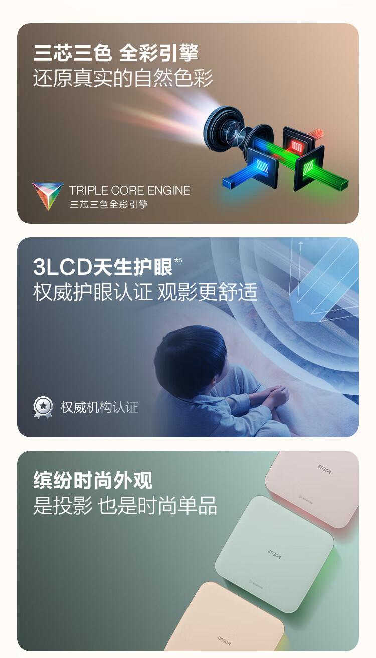 爱普生(EPSON)EF-17N/15B/W/16G/50R/52投影仪 3LCD高亮家庭影院智能投影机家用卧室电视手机投屏大屏 EF-17N【全景云台】