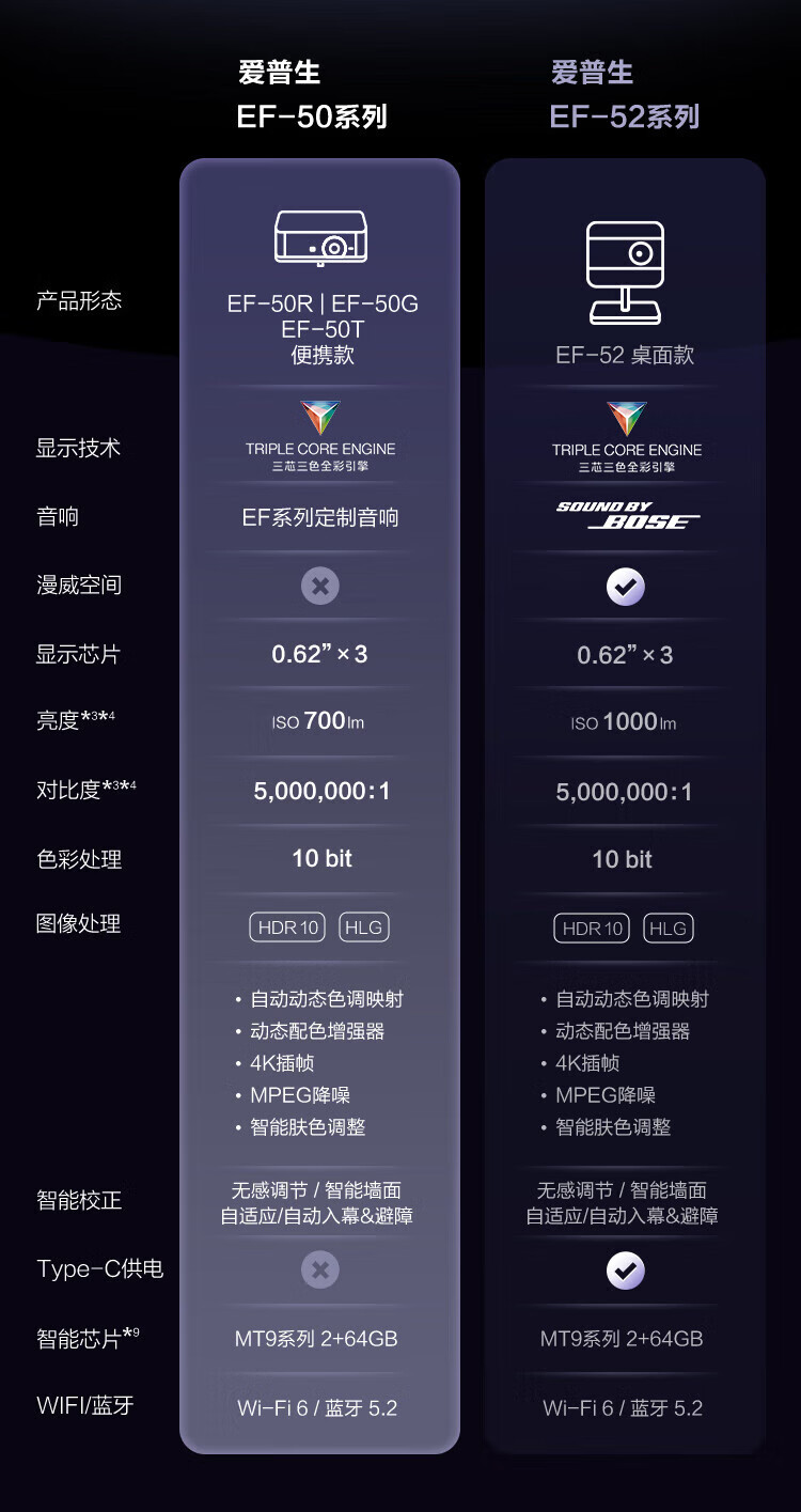 爱普生家用投影仪 露营家用客厅投影机(4K超高清 BOSE深度定制 支架款多场景适配 ) EF-52S(4K激光 品质音效)