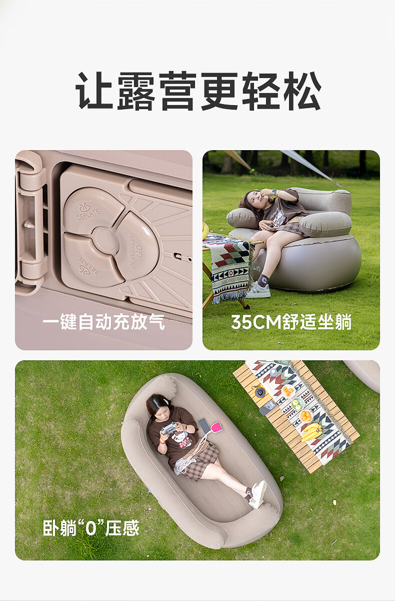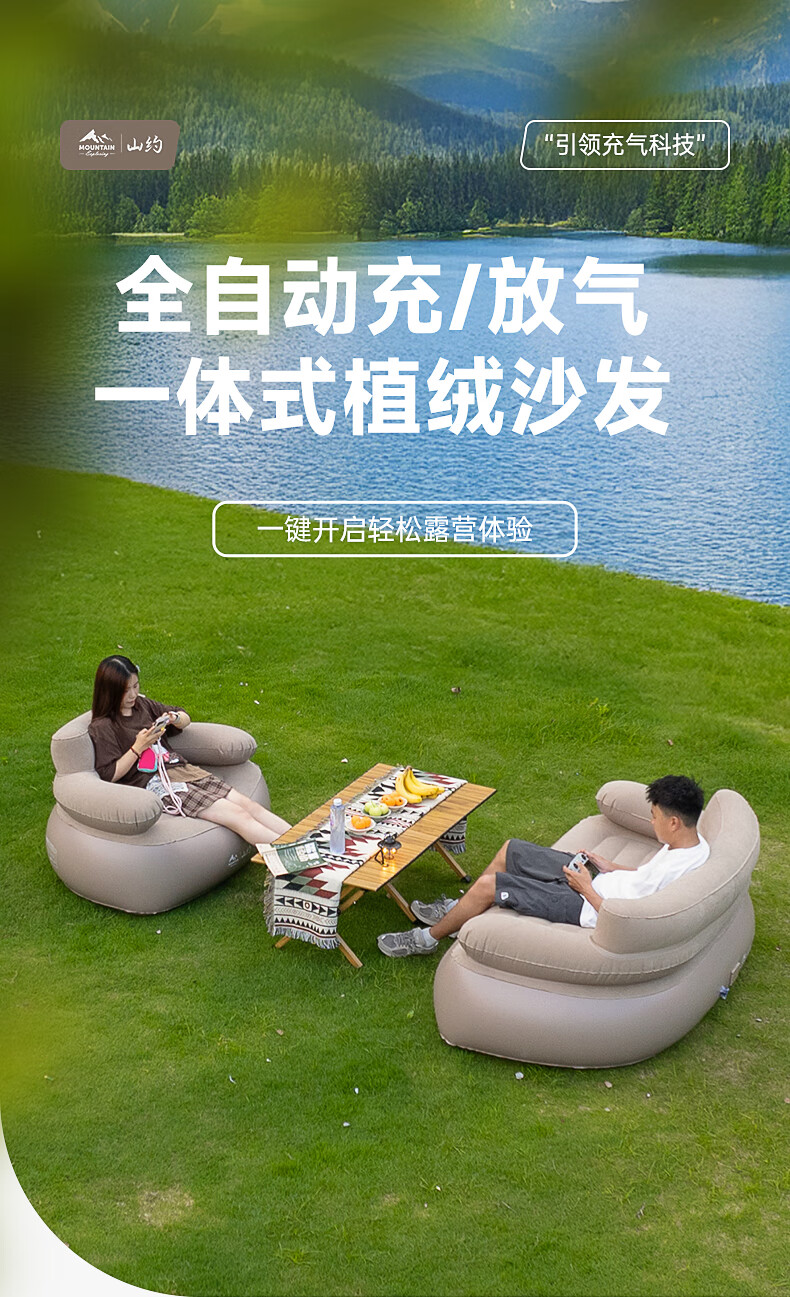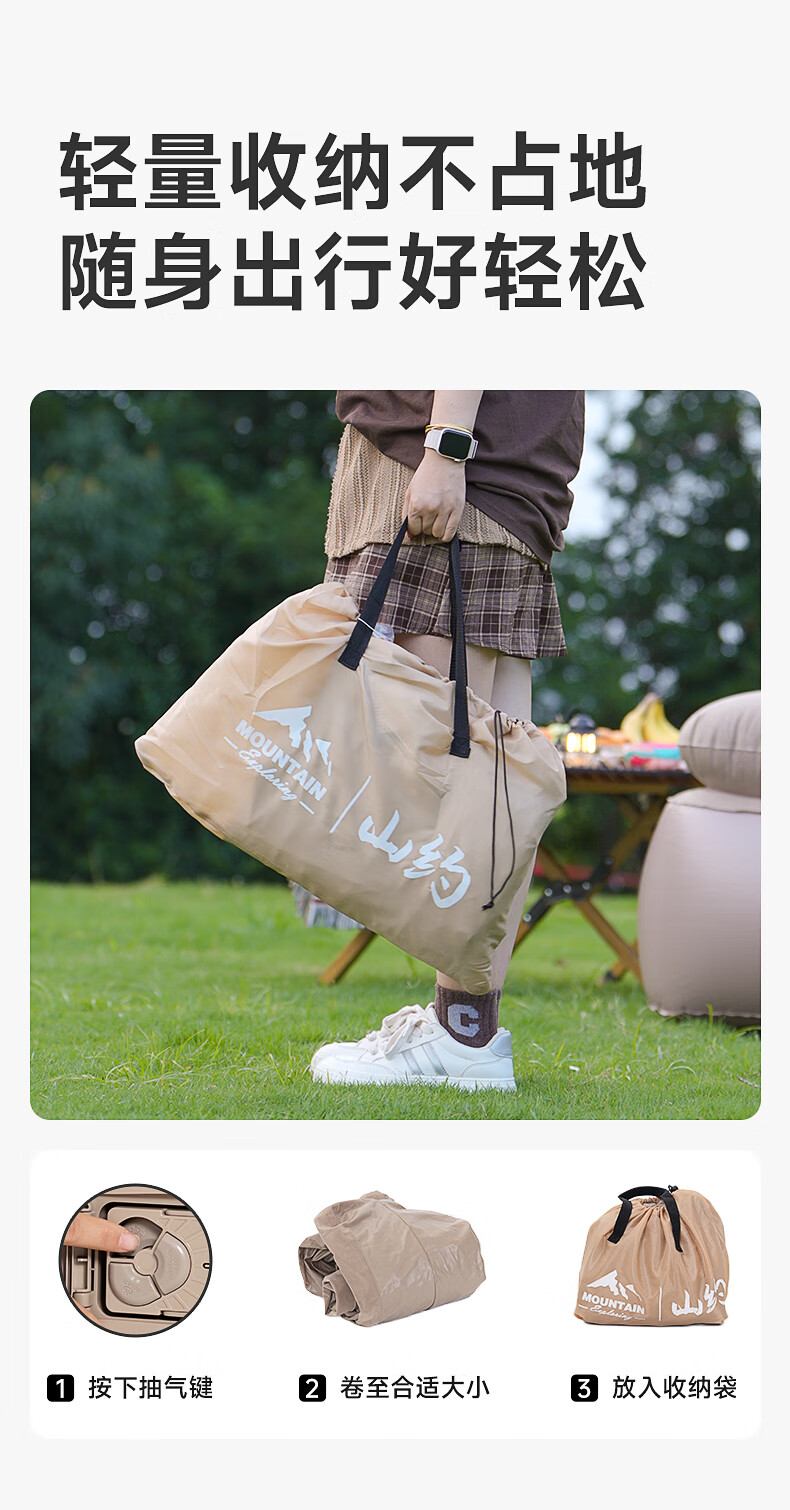 山约山约新款自动充气沙发音乐节充气床垫单人户外便携露营坐躺气垫床 【卡其色-单人】自动充气沙发 无规格