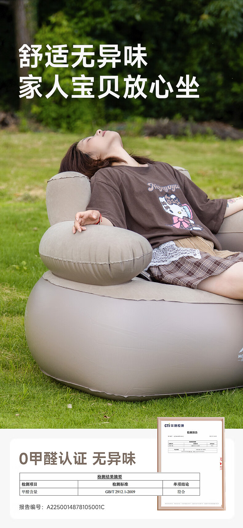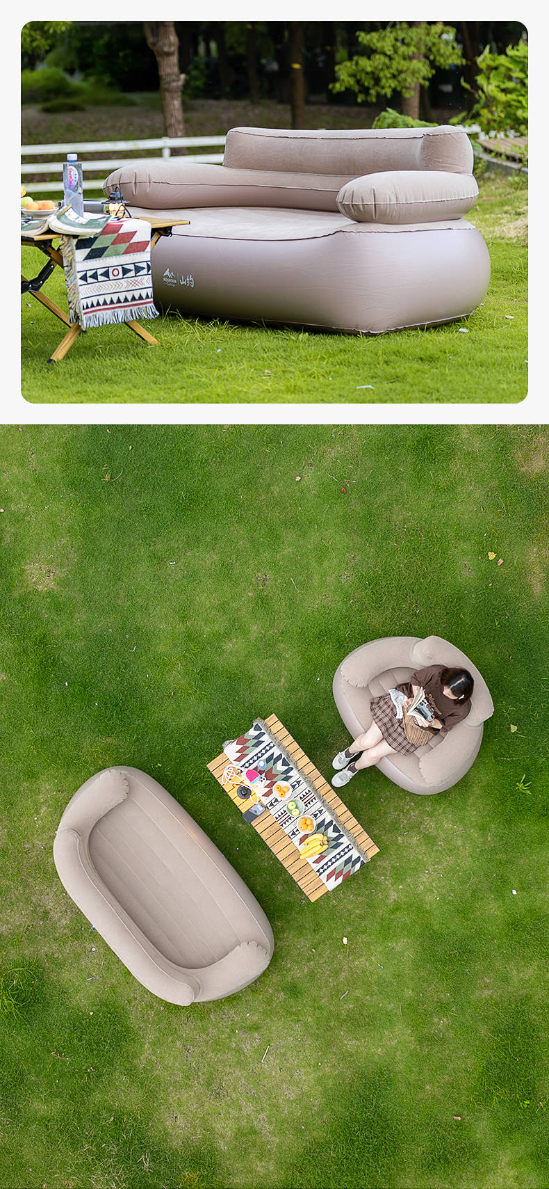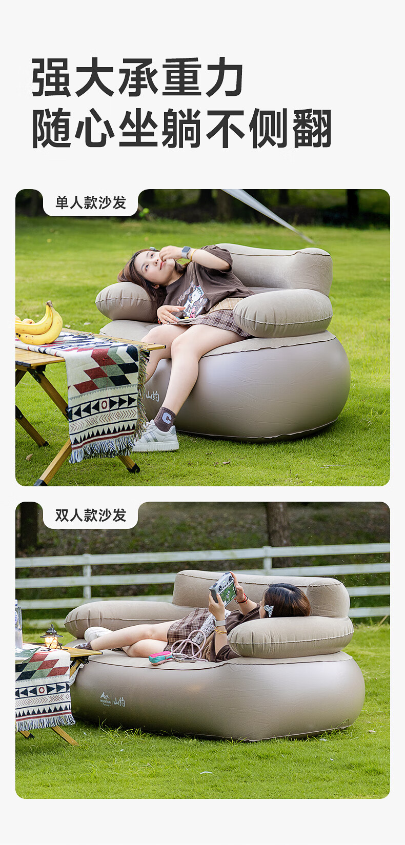 山约山约新款自动充气沙发音乐节充气床垫单人户外便携露营坐躺气垫床 【卡其色-单人】自动充气沙发 无规格