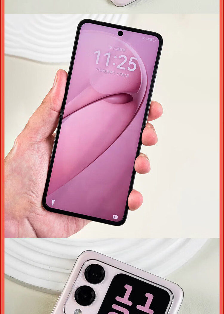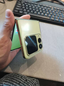 不建议买,不值这个价,拿到手机第一时间就是拍照,很模糊,像素也很差,再然后是手机折痕明显,刷视频摸到不是很舒服,提个醒这个手机的外屏不能添加你想添加的软件,只有它原有的。 (因为没时间去实体店看手机,也比较急用,就想着在网上买很快就能到,物流倒是挺满意的,前一天晚上下单,第二天下午这样就到了)拿到手机后我就联网试试能不能用,接收信号好不好。不是很满意就想退,客服说手机激活了就不能退了,行,我看走眼了,如果大家只看颜值的话对拍照没要求,可以试试这款,颜值不错;但是有要求的就别看这款了,我本来想上直接回收没想到我五千四多买的,回收预估只有三千六这样,还是因为新客➕了几百才有的三千六