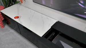 很酷的智能电视柜 宽度只有35公分左右特别薄 我看了好多家柜子都是60的宽度太厚了 很满意这款 白色也符合我家的装修风格。