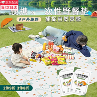 焱思泰户外一次性野餐垫防潮垫加厚露营学生春游垫子便携防水草地沙滩垫 印花款1包*4枚地钉*200*230cm 【防水防潮 方便携带】