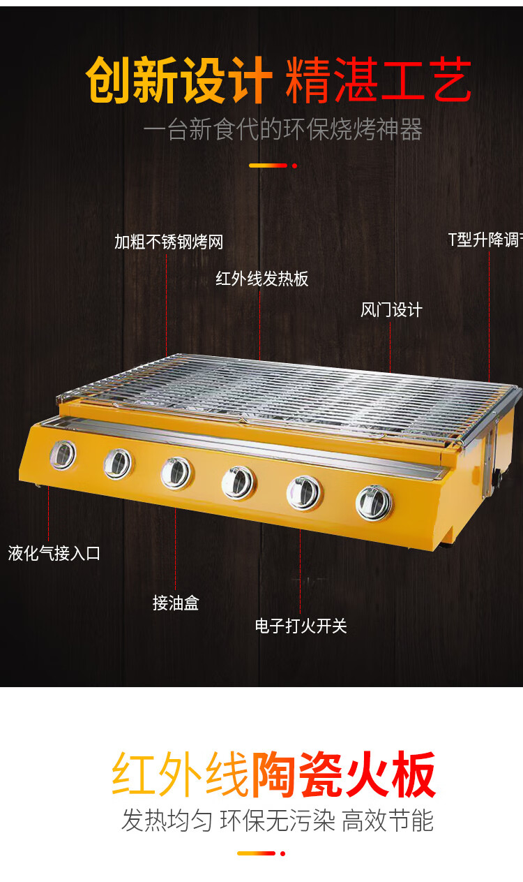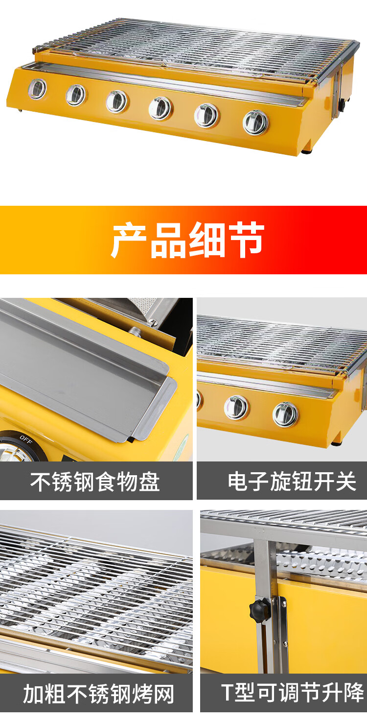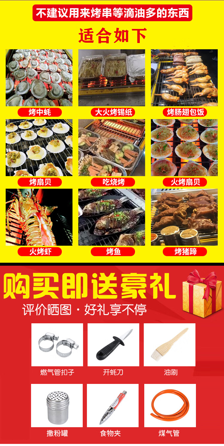 烤生蚝煤气炉燃气烧烤炉商用摆摊架家用烤鱼煤气炉烤扇贝夜市 大六头带钢片【送礼包】