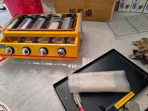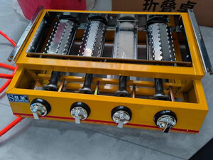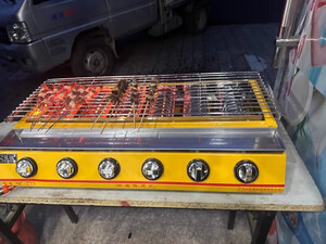 颜色鲜艳,四个灶头,安装试了一下挺好用的,火很容易就打着了。还送了烧烤架,油刷,撒料罐罐