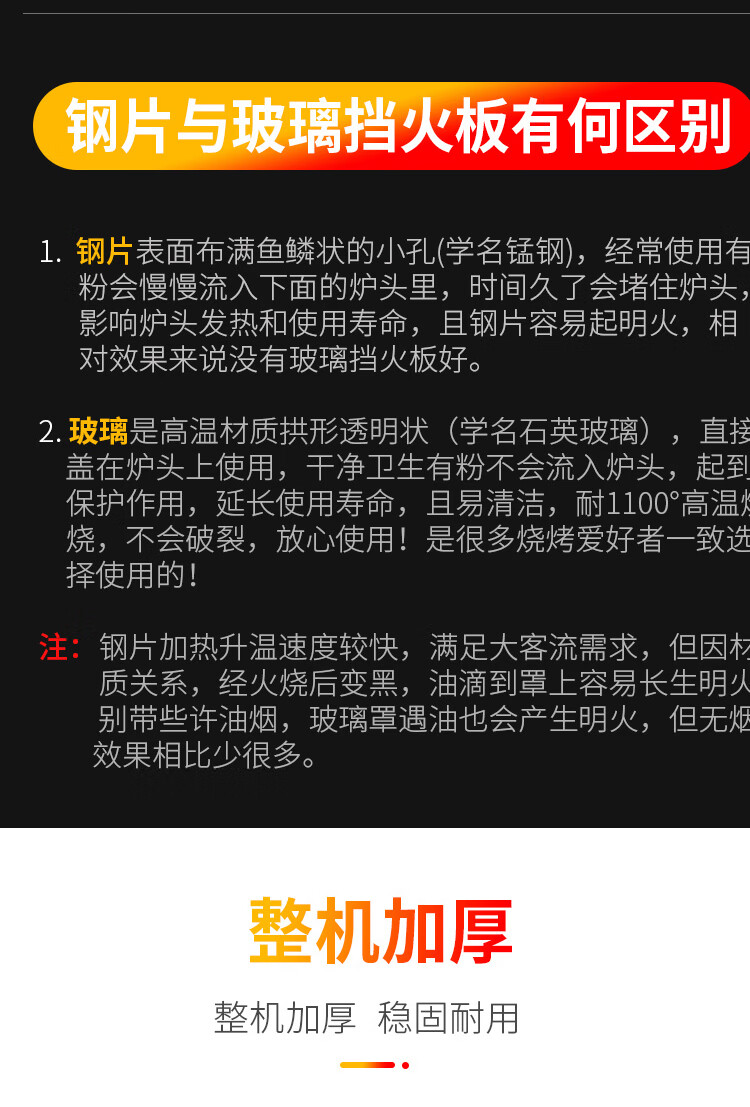产品功能:功能齐全,火力很足,适合摆摊做生意 外观材质:美观大气,高端大气上档次 商品品质:用料很足。