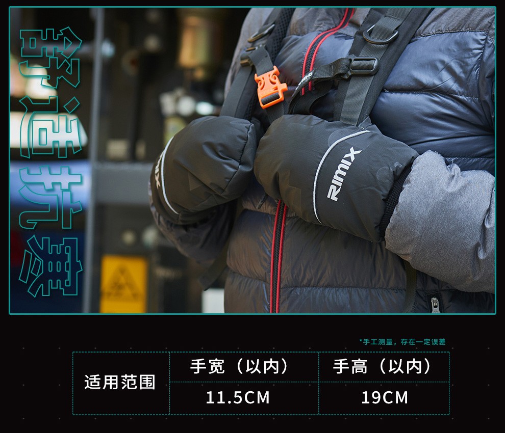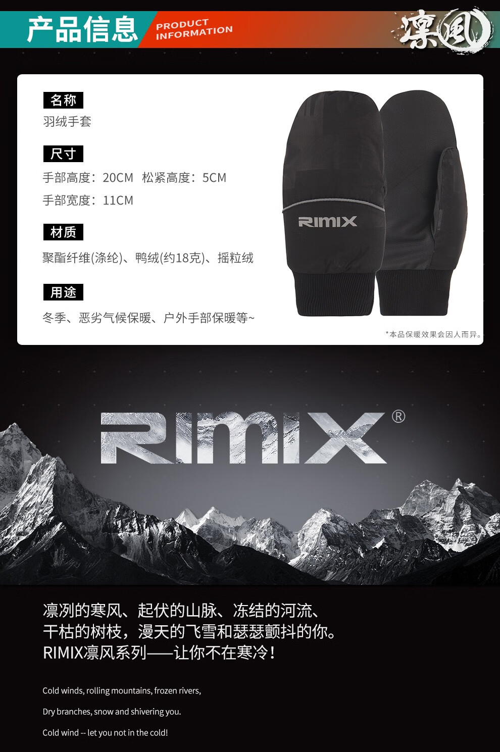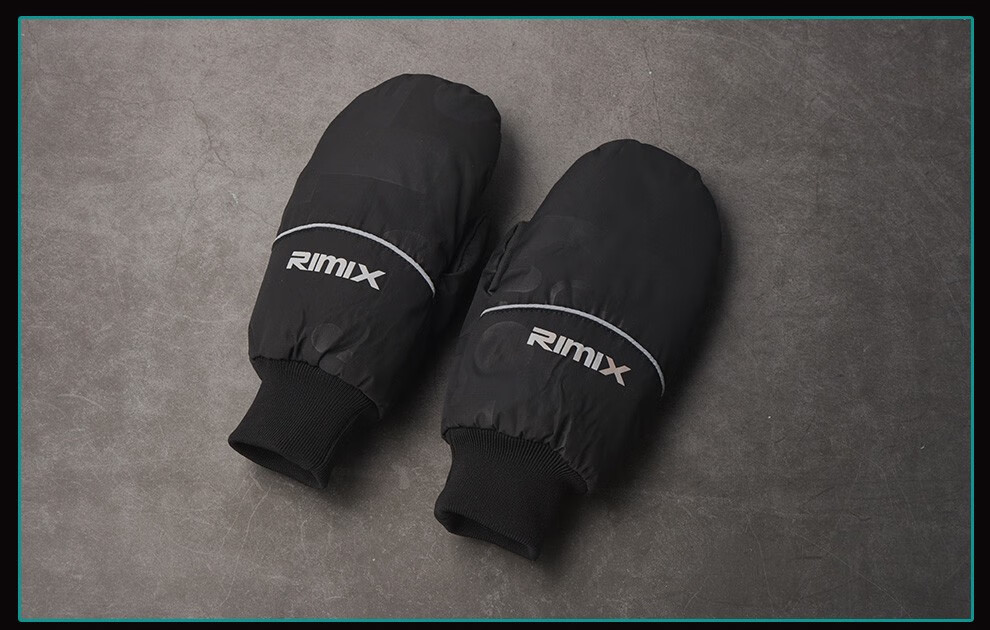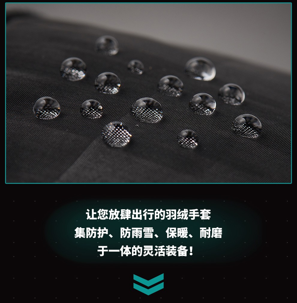 RIMIX羽绒手套冬季加绒加厚保暖防水防滑骑车滑雪男女连指手套 黑色