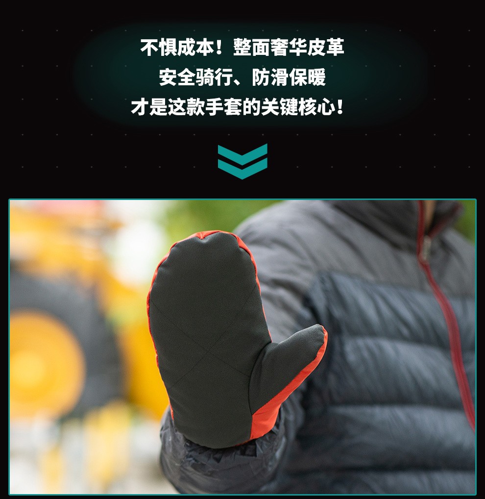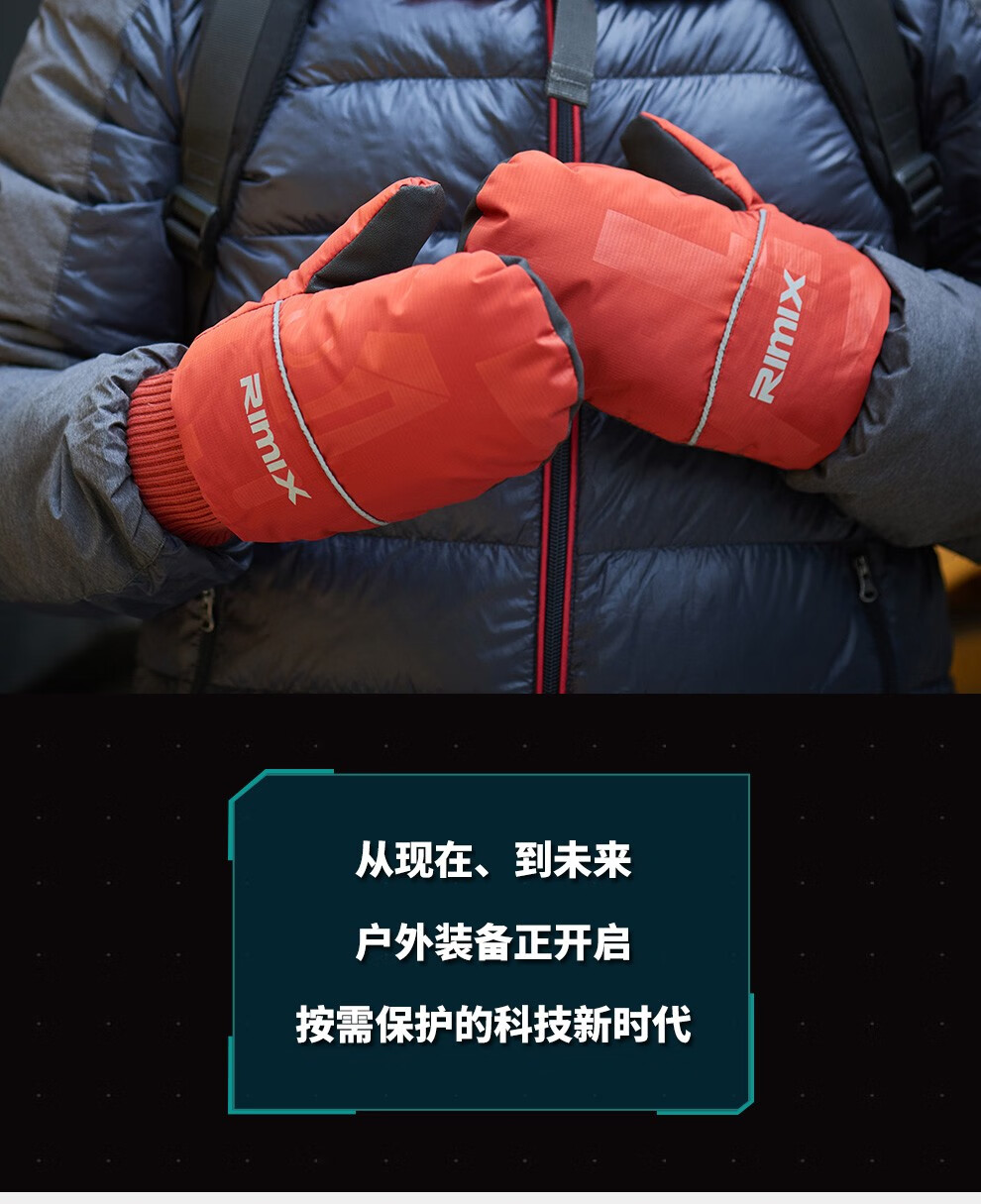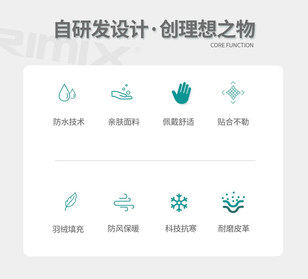RIMIX羽绒手套冬季加绒加厚保暖防水防滑骑车滑雪男女连指手套 黑色