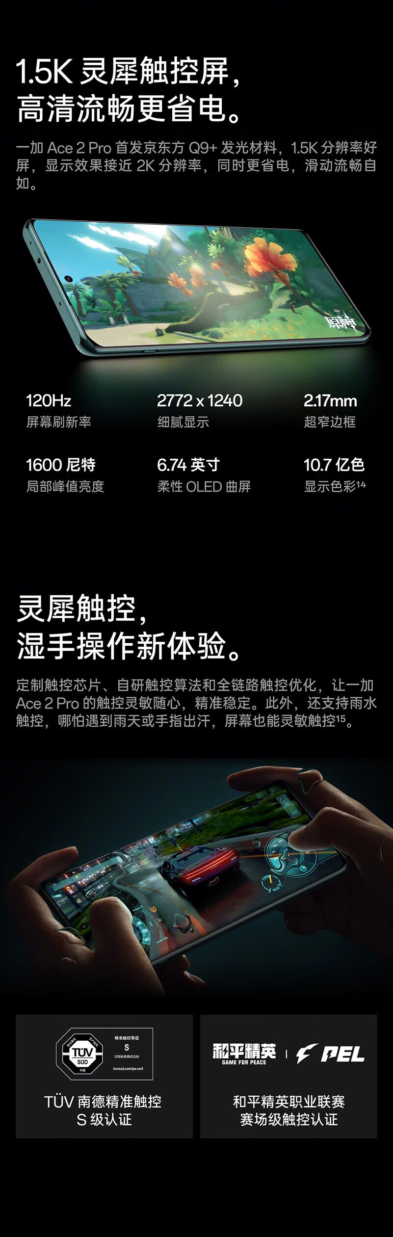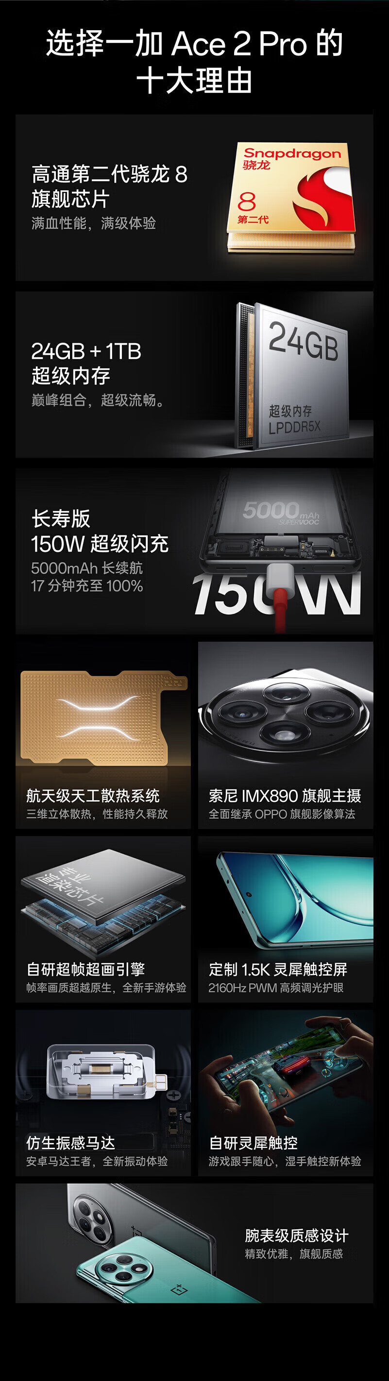 一加Ace 2 Pro 电竞5G手机 第二代骁龙8 补贴机游戏机 钛空灰 24GB+1TB