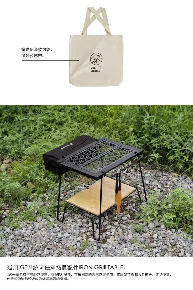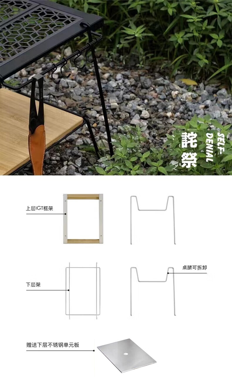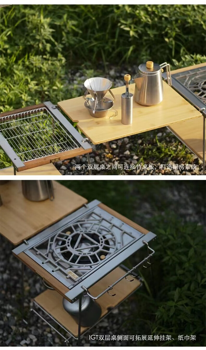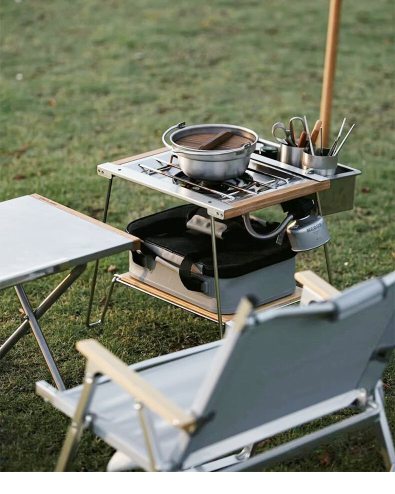 超级实用的小桌子 单人多人个个场景都可以随心搭配当你只想周边简单喝个茶水看看风景带上它就够用了一个小包拎着就走 当多人场景他可以直接放上一单元炉头放在一边烤肉炒菜再也不用在主桌上烤肉喷的到处是油一点点去查了