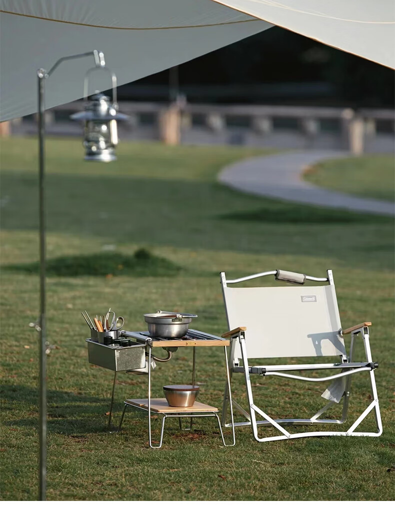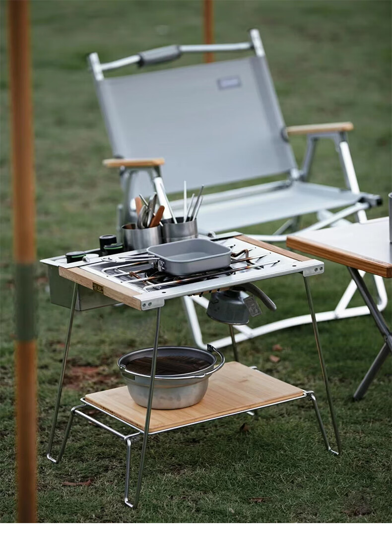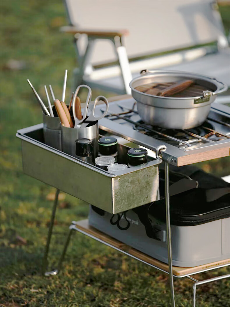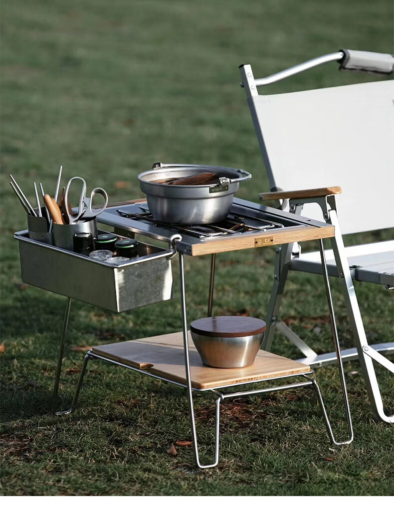 超级实用的小桌子 单人多人个个场景都可以随心搭配当你只想周边简单喝个茶水看看风景带上它就够用了一个小包拎着就走 当多人场景他可以直接放上一单元炉头放在一边烤肉炒菜再也不用在主桌上烤肉喷的到处是油一点点去查了
