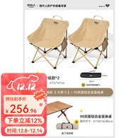原始人月亮椅户外折叠椅露营椅子桌椅沙滩椅便携躺椅野餐钓鱼椅凳 经典款卡其*2+90双面铝桌