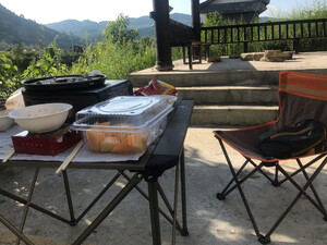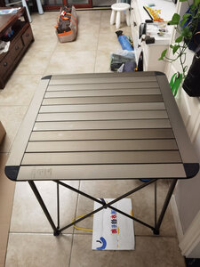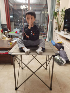 用料材质:桌子材料为铝合金。设计很好,安装后牢固。 室内室外:桌子终于到货了,下单时北京防控二级改三级,孩子在家圈半年了,准备全家去效野散散心。可收到桌子时北京又从三级防控改二级了。 适用人数:一家四口正合适。 便携性能:便携性很好,折装方便。 重量大小:重量还可以,有收挪袋。放在车后备箱里还可以。就是桌子面铝合金型材有碰伤,但不影响使用,只是不美观。想是役情防控就不折滕了。