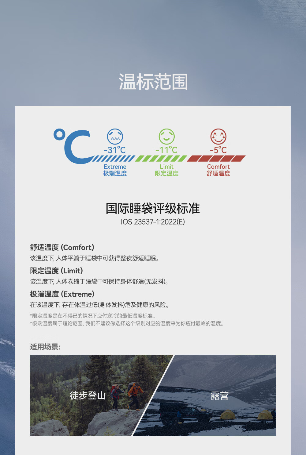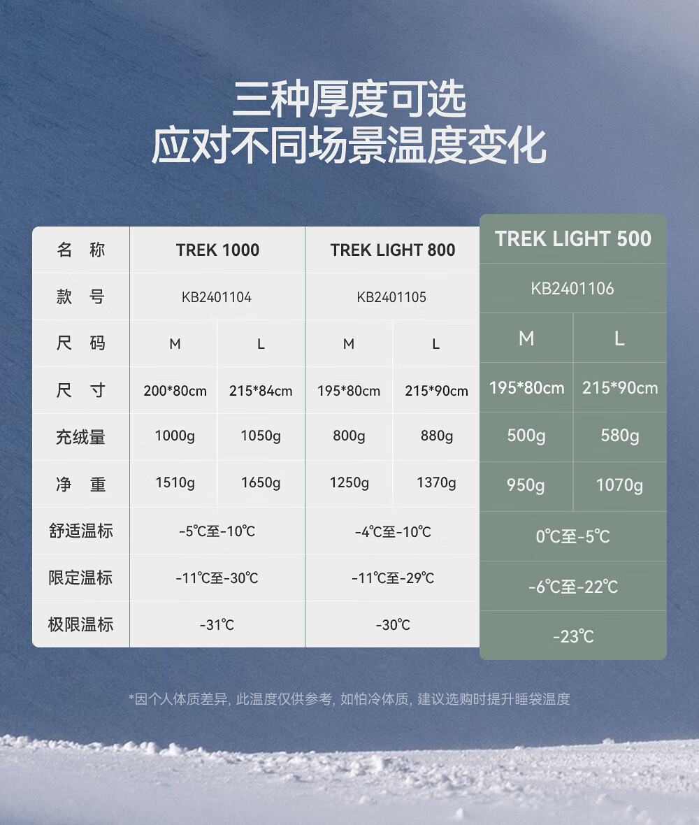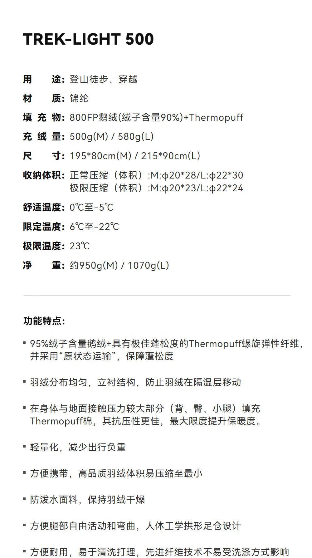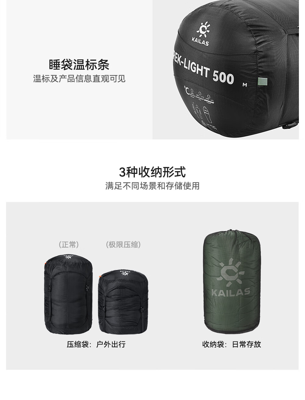 凯乐石 户外运动 TREK-LIGHT 500 轻量羽绒睡袋 KB2401106 银灰色 M