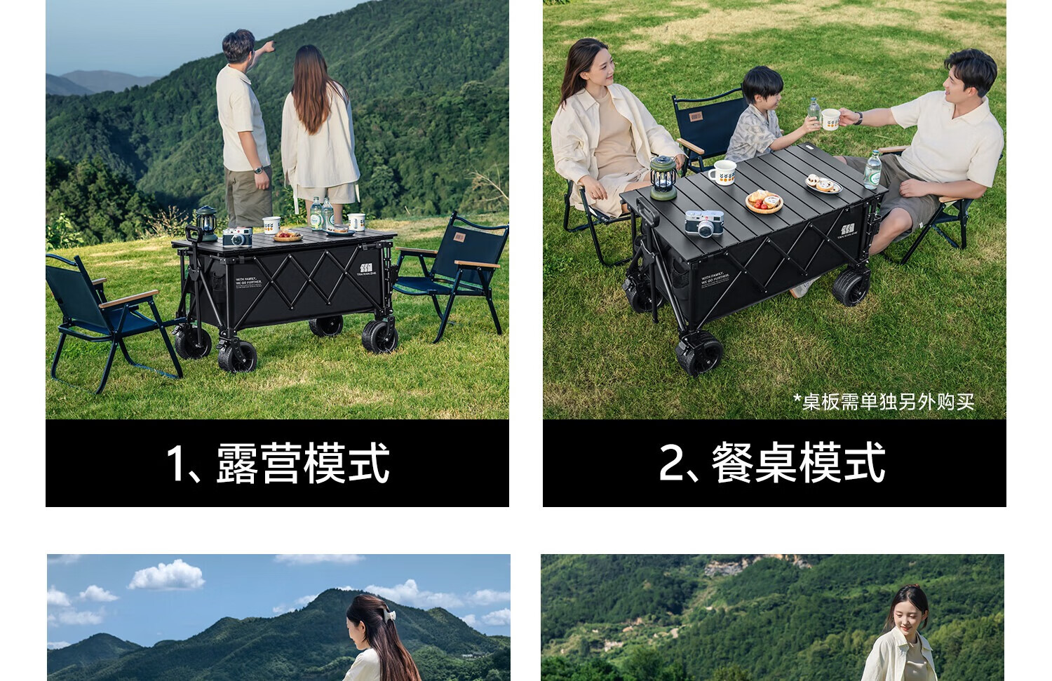 疆屿露营车野营户外折叠手推车野餐摆摊拖斗车儿童可躺聚拢营地车