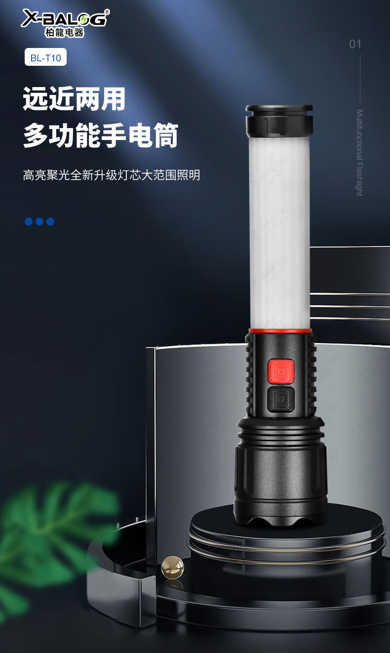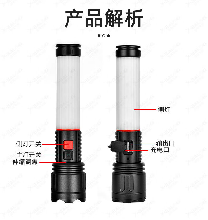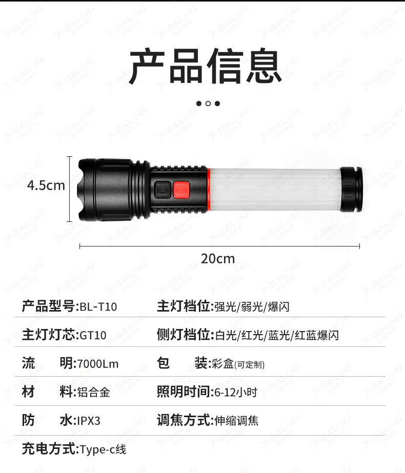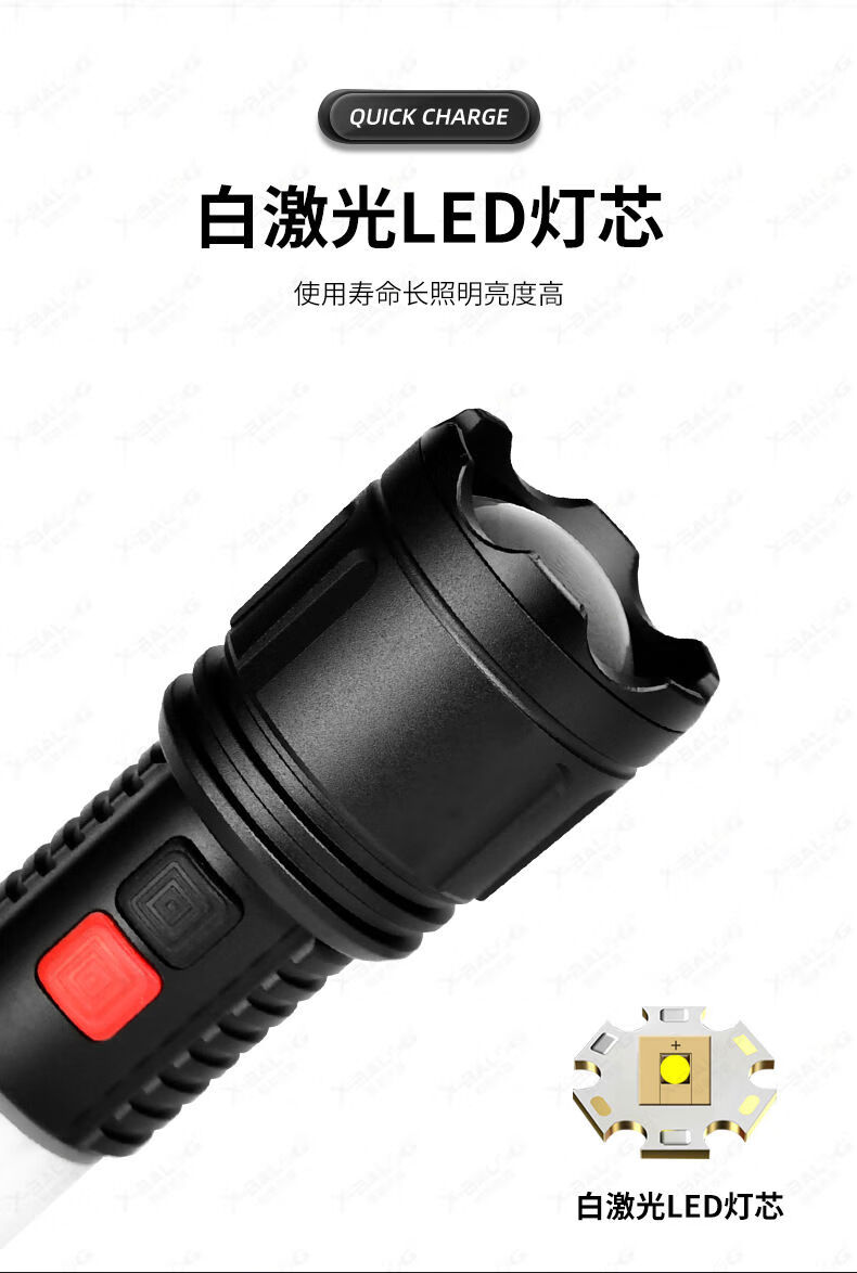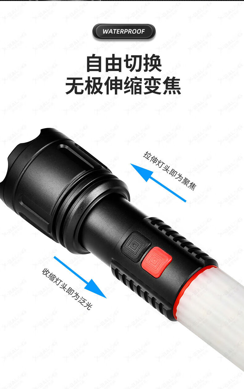 德国日本进口技术抖音伸缩变焦强光手电筒LED户外照明内置锂电池 BL-T10彩盒
