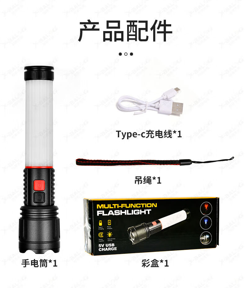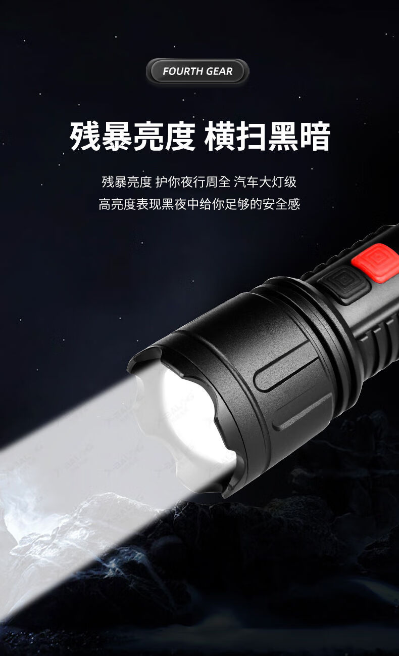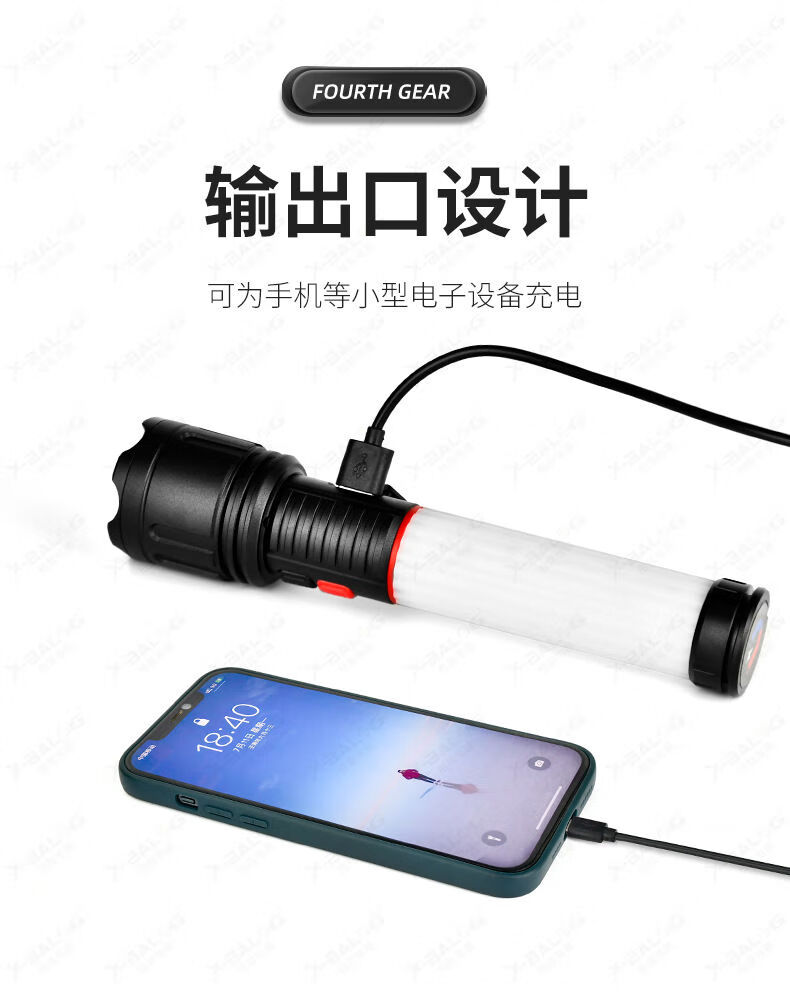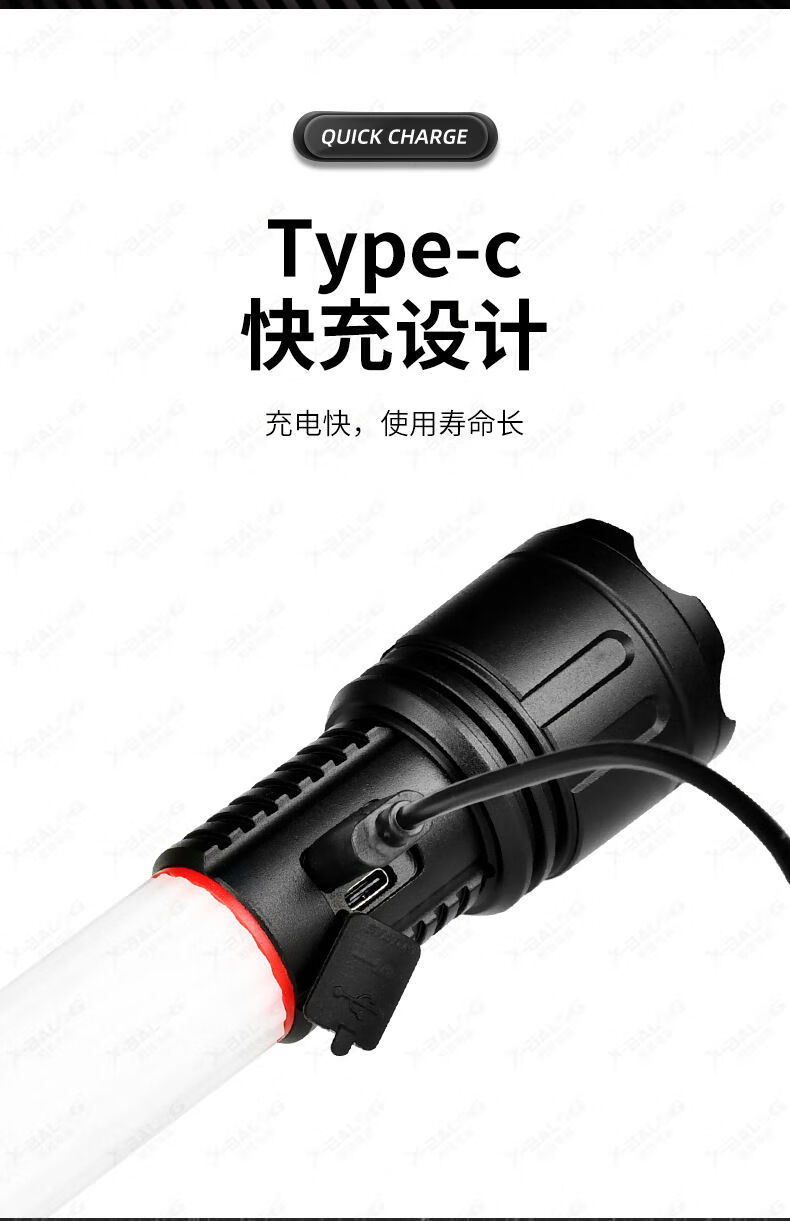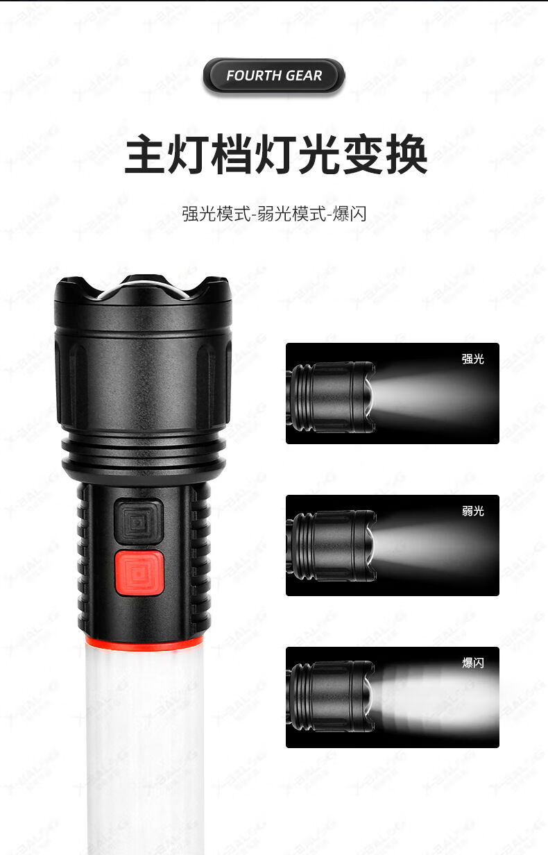 德国日本进口技术抖音伸缩变焦强光手电筒LED户外照明内置锂电池 BL-T10彩盒