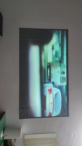 刚收到现在看还是挺清楚的白天窗帘全部拉完的话也看不清楚有一个不好的地方就是后面有一个阴影的地方一直是歪的客服说是幕布的效果看着~变扭