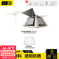 探险者帐篷户外露营便携天幕帐篷速开加厚黑胶防雨防晒全遮光野营装备 黑胶六面落地6-8人【帐篷+天幕】