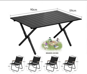 清系便携式露营桌子野餐可折叠克米特椅野营用品装备户外折叠桌蛋卷桌 特大号黑色【木纹椅架】