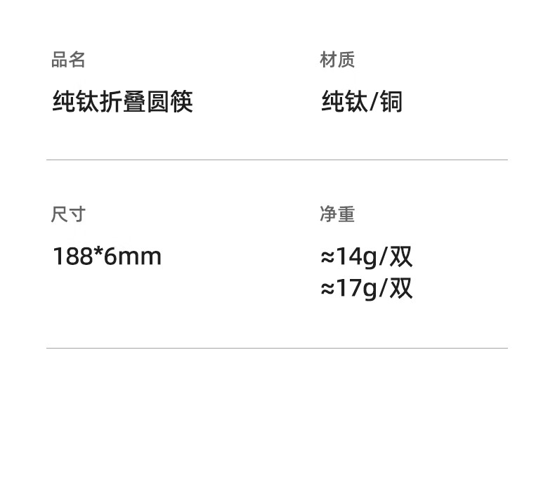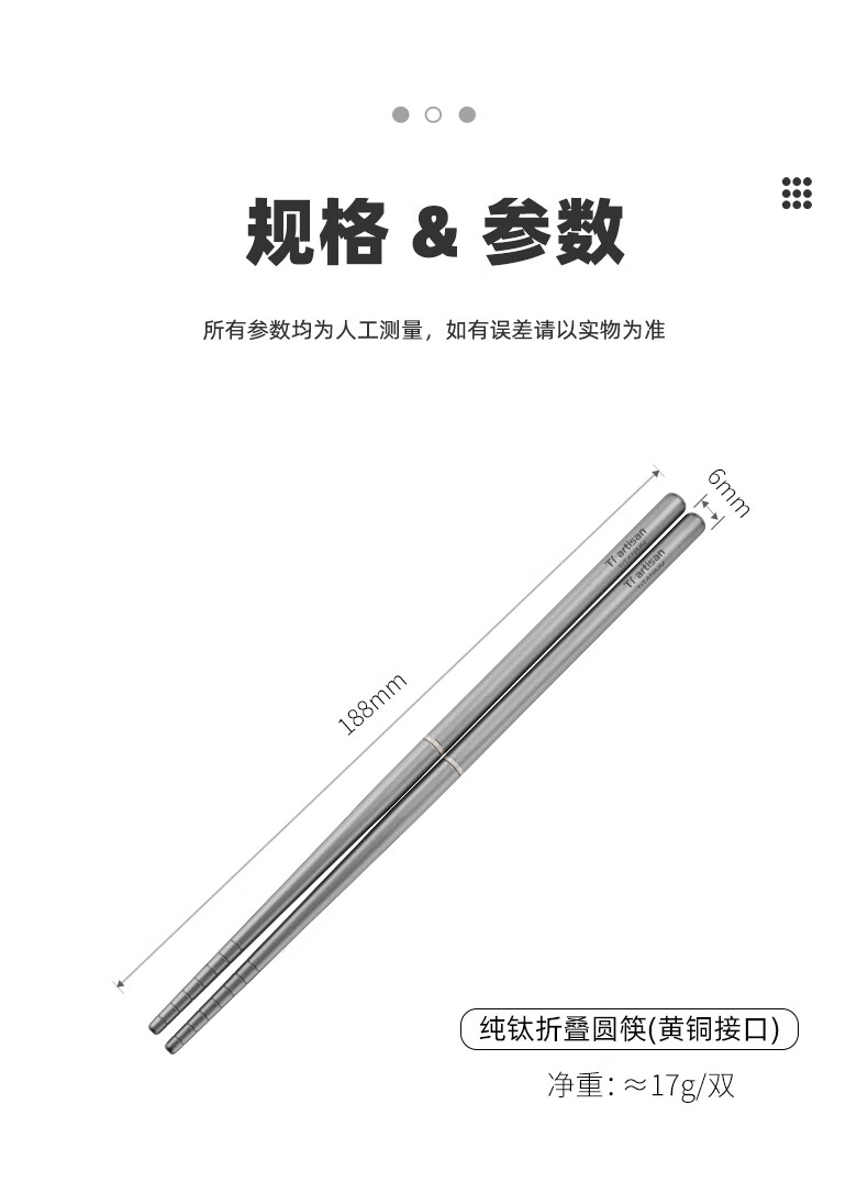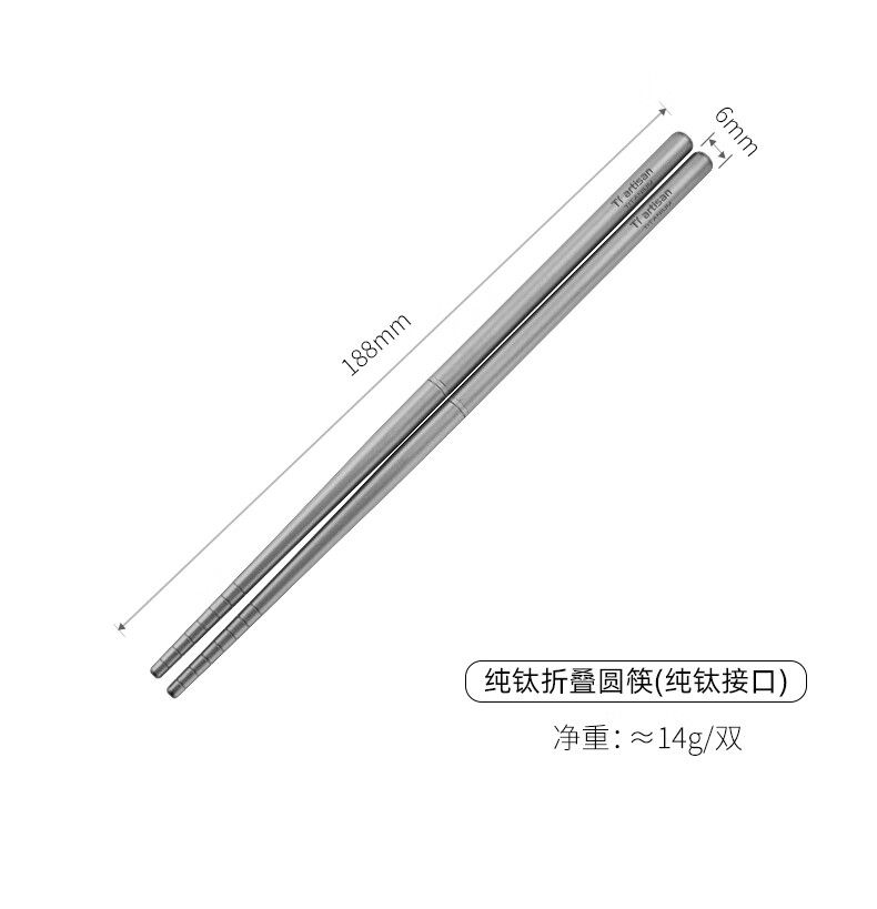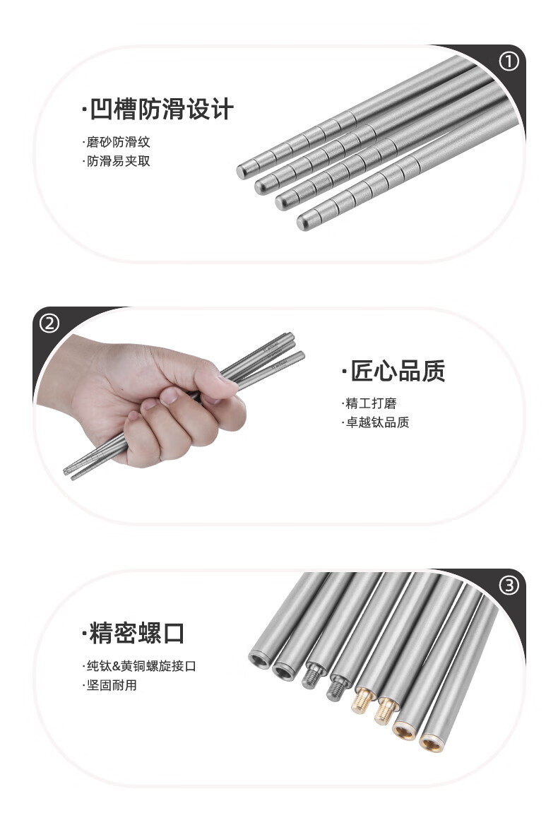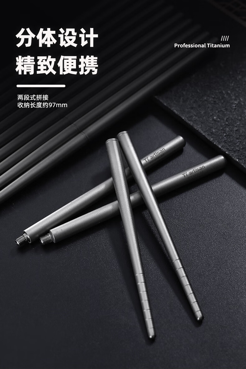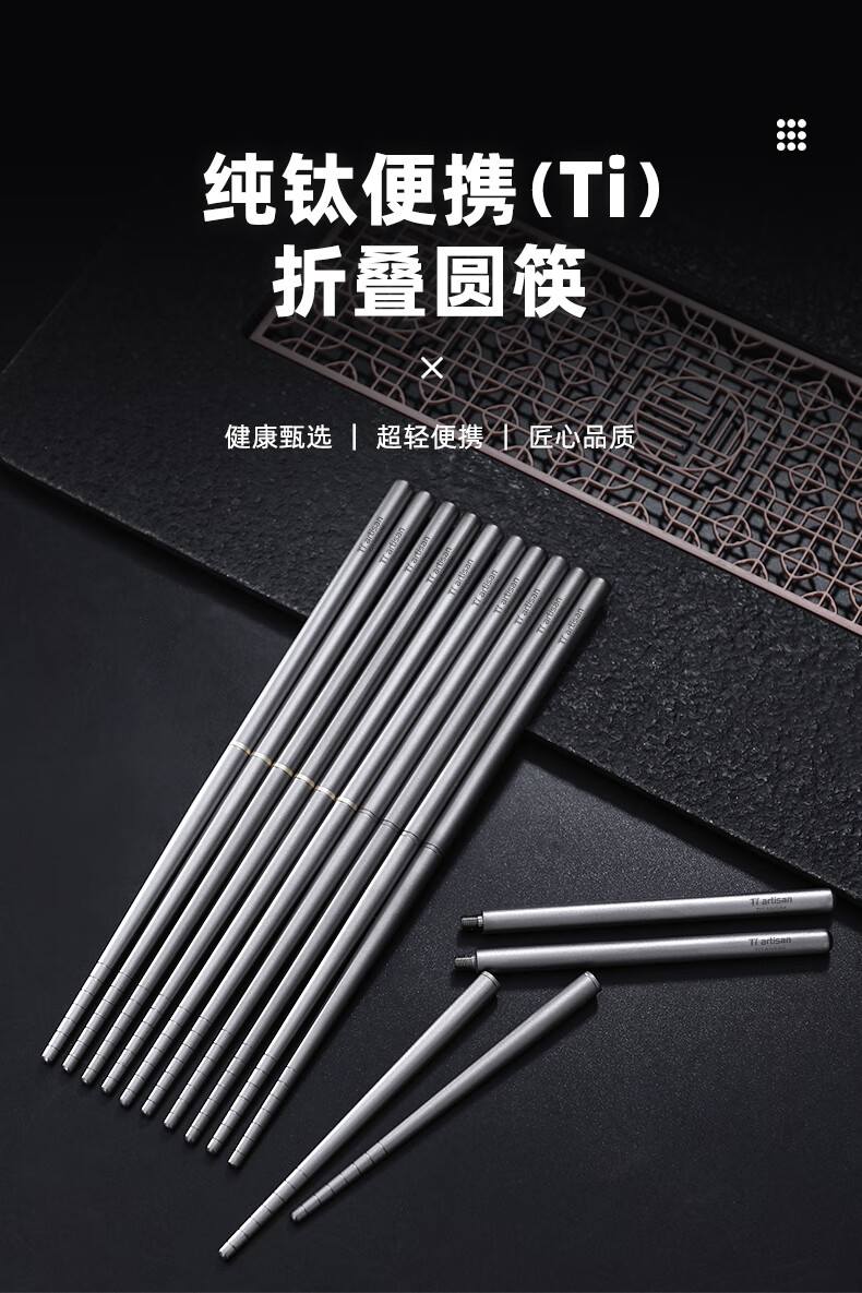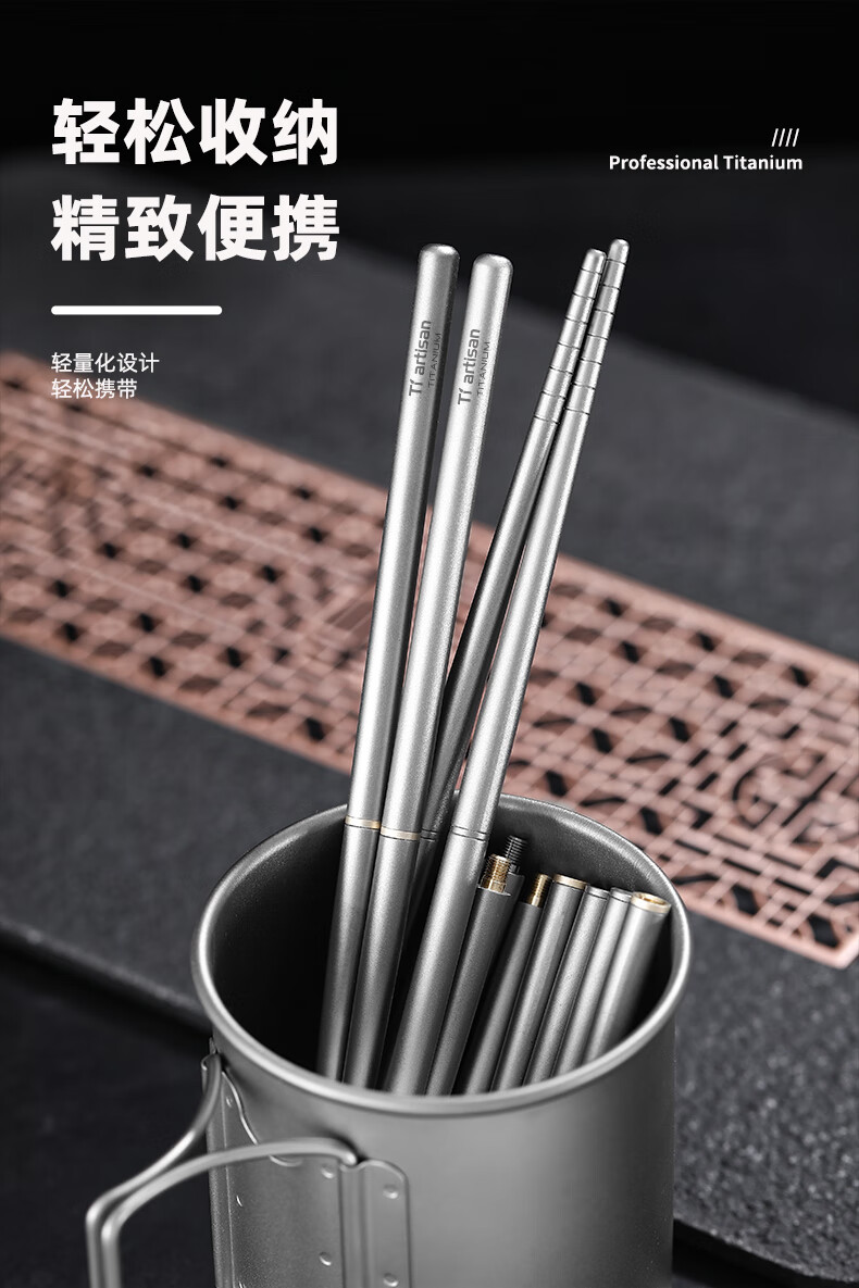 Ti artisan钛工匠纯钛可拆卸圆筷户外露营便携式钛筷子家用钛餐具套装钛筷子 可拆卸钛筷子【纯钛接口】