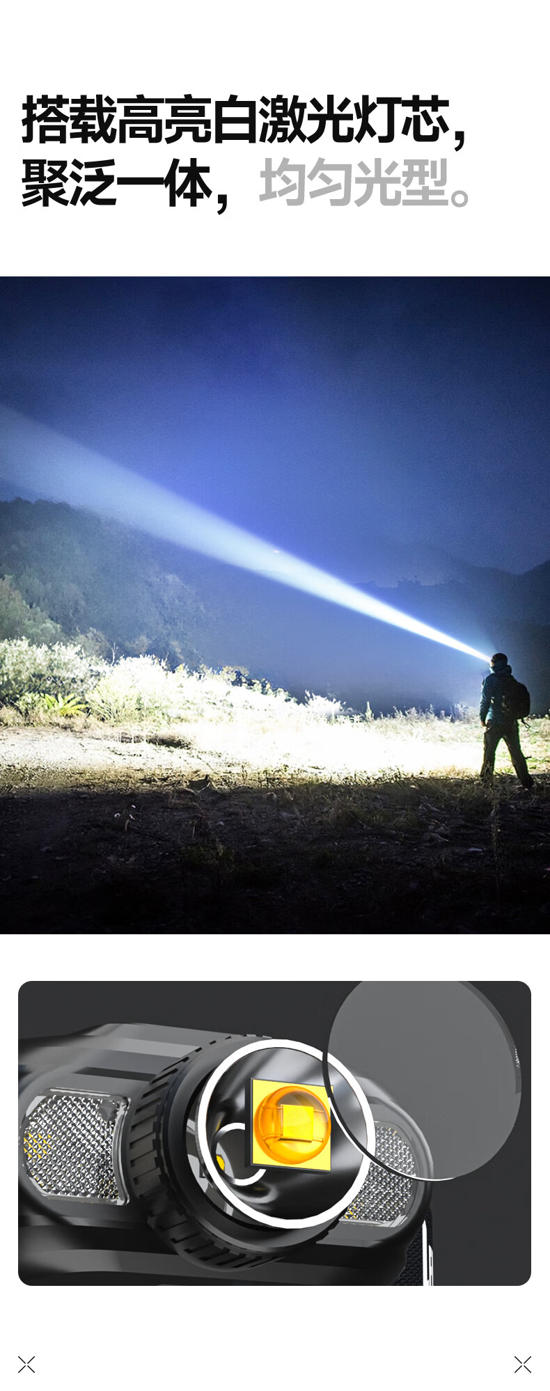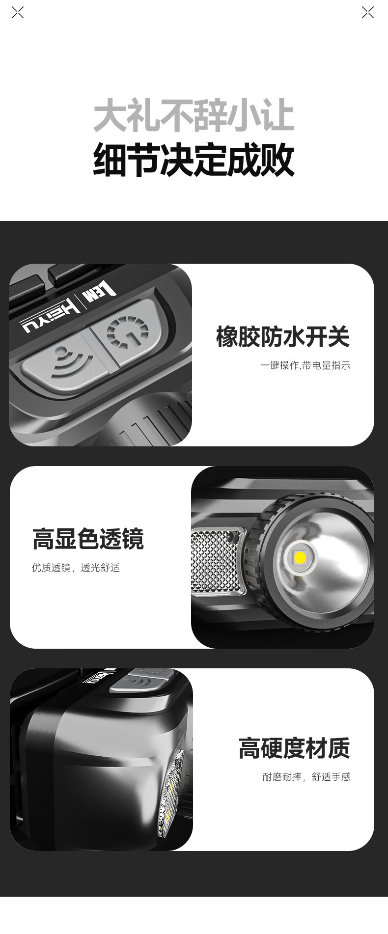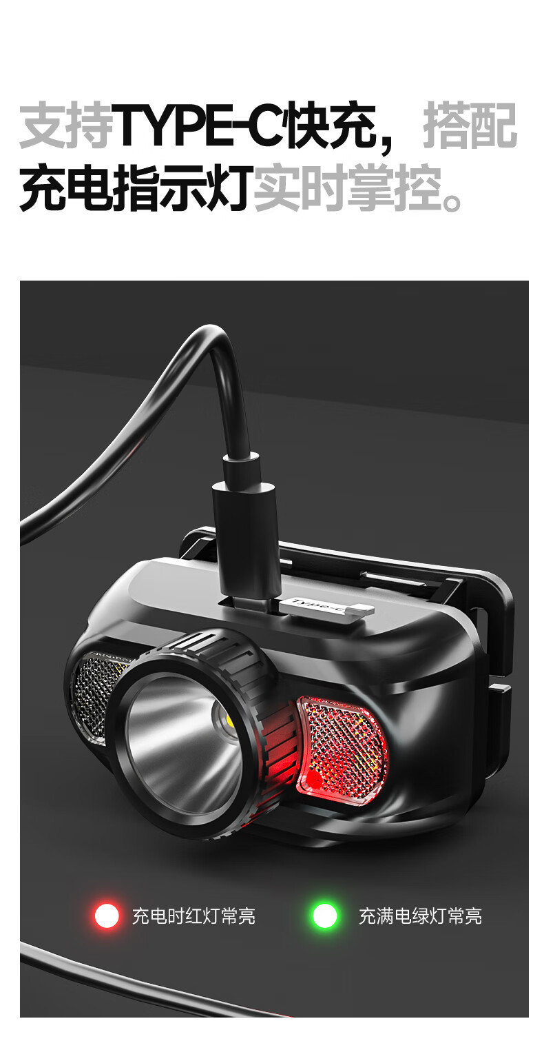 LEM头灯强光夜钓赶海超长续航充电感应超亮远射防水工作钓鱼强光手电