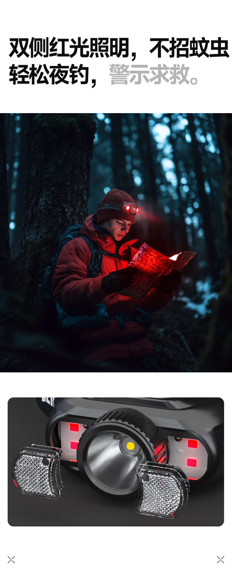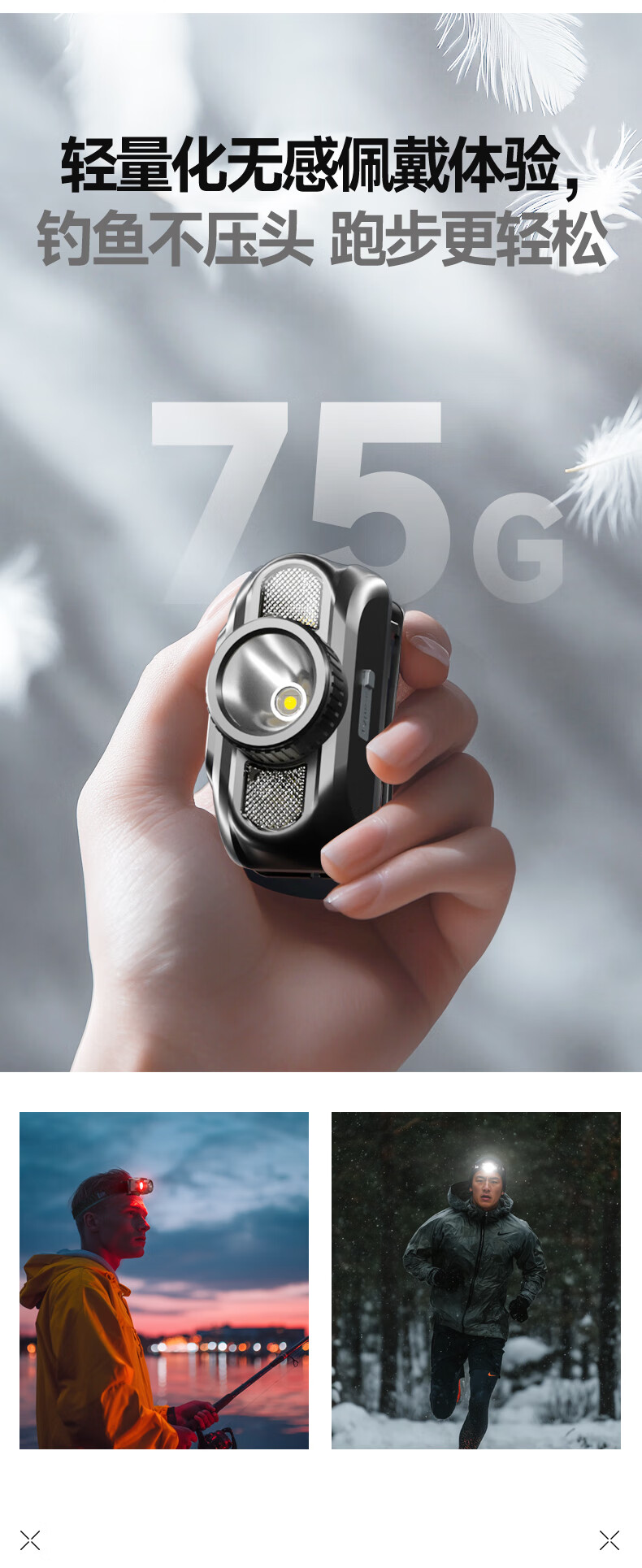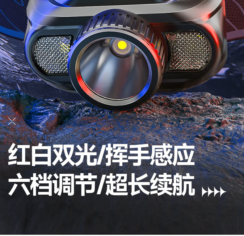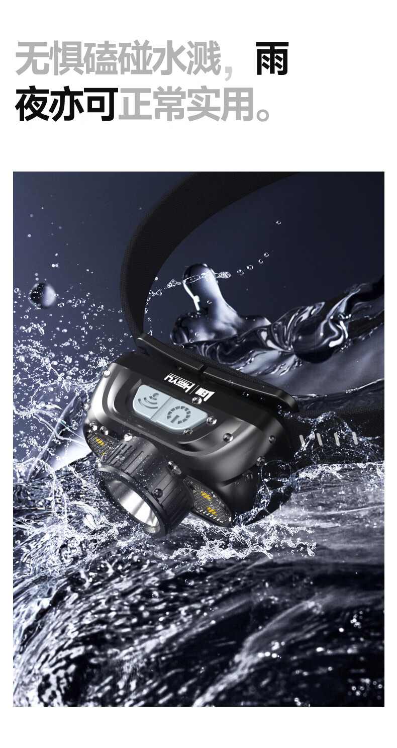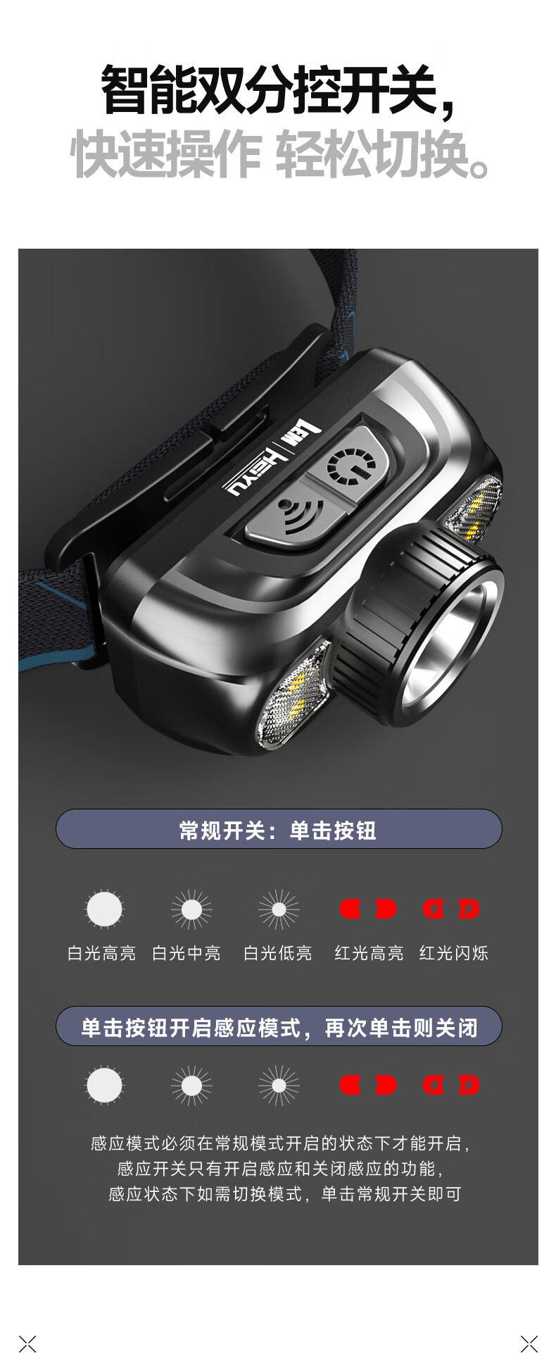 夜眼强光感应头灯帽夹灯小巧可携式轻量防水龙头戴式白光照明红光驱蚊