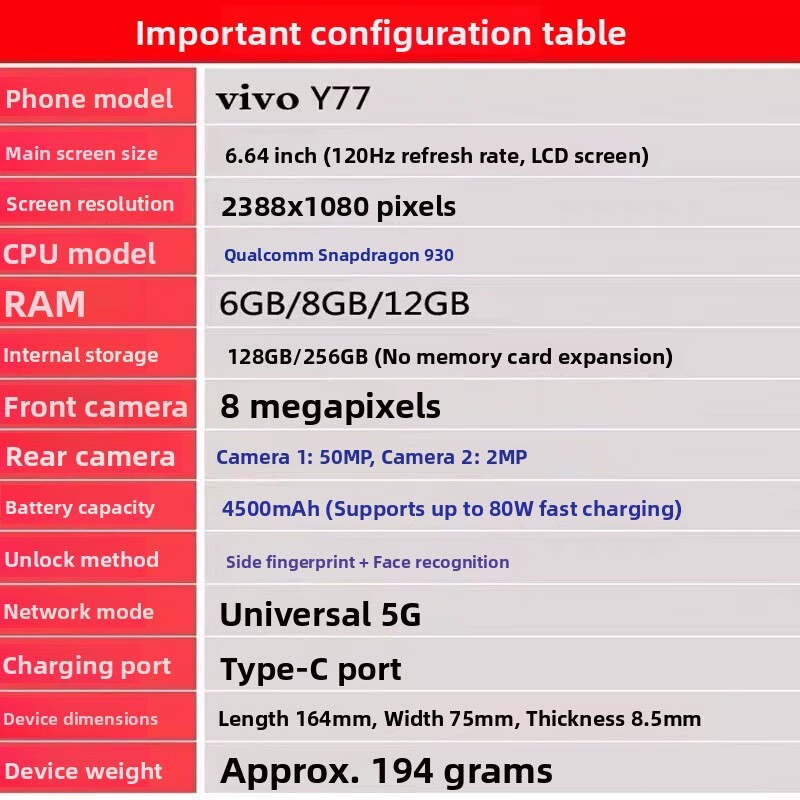 vivoVivo Y77天际930处理器5g络120Hz高刷屏性能游戏手机备份机 晶岩黑 8GB+256GB