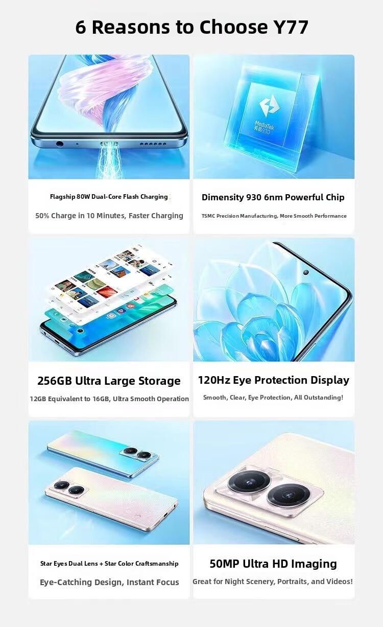 vivoY77 5G天玑930原装 拍照美颜智能游戏手机备用机 学生机 晶钻粉
