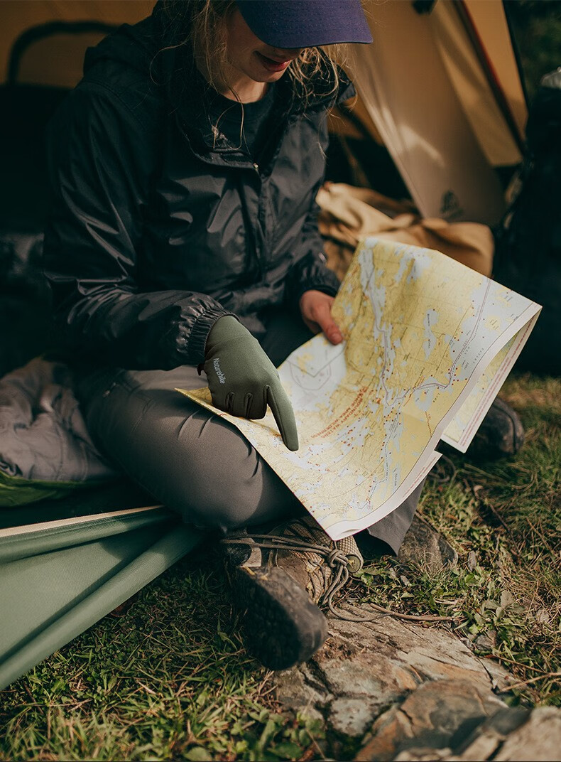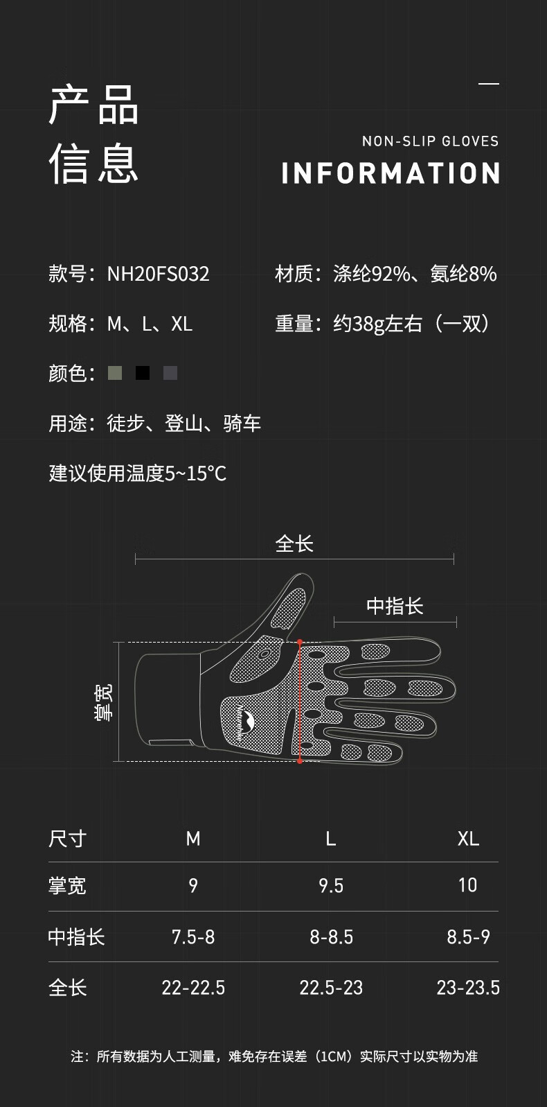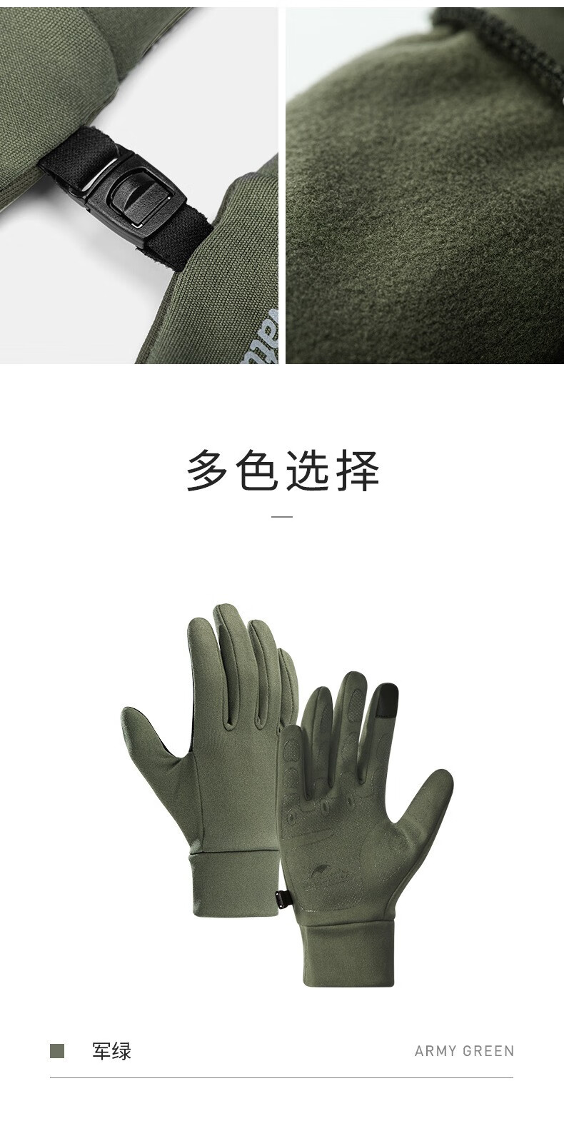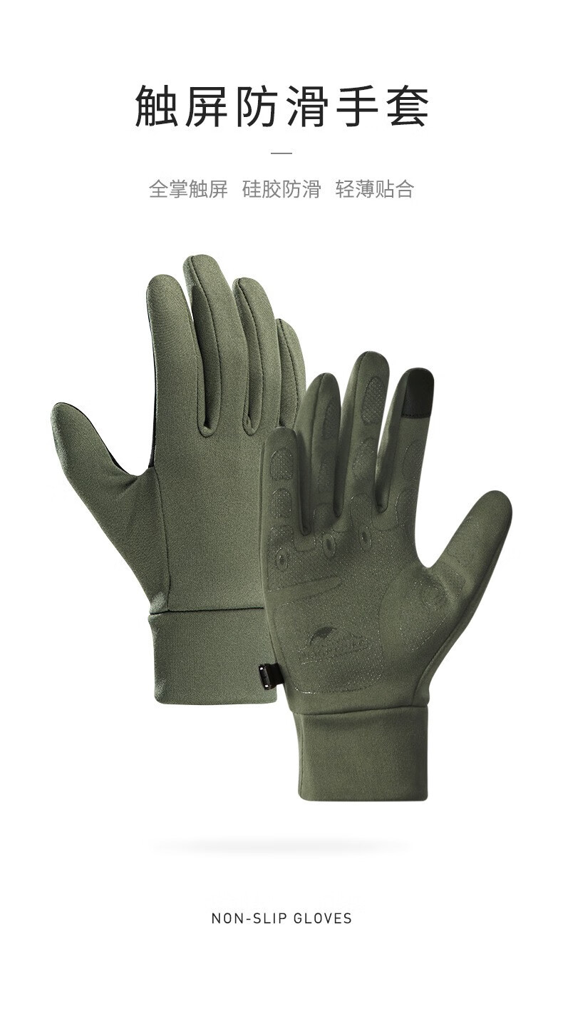 NatureHike 挪客 户外触屏防滑手套男 徒步骑行登山全指手套女夏季薄款 军绿 L