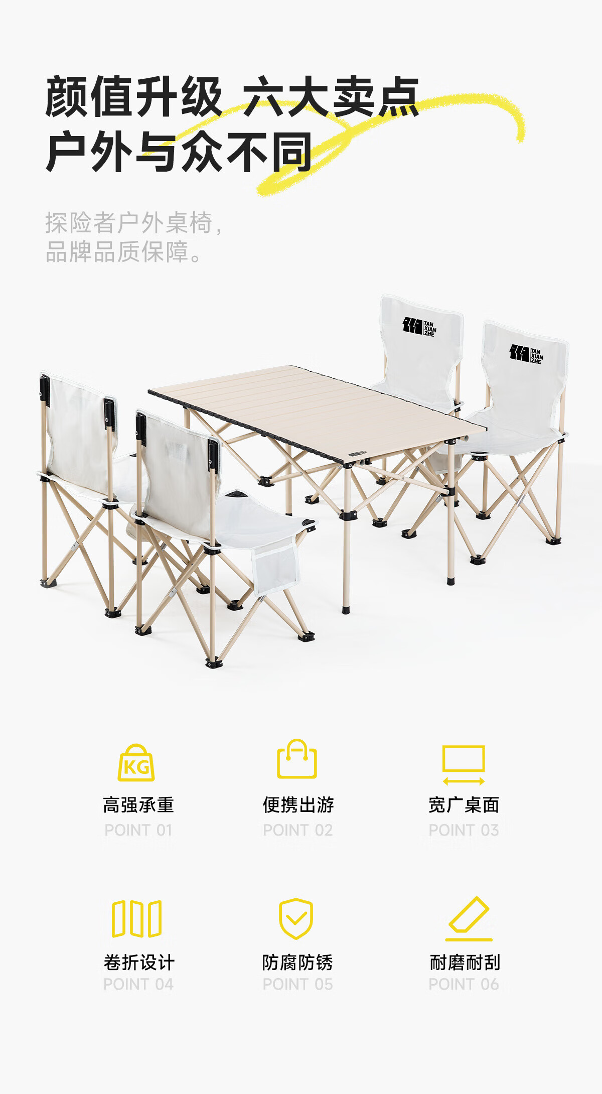 探险者(TAN XIAN ZHE)户外折叠桌蛋卷桌便携式野营野餐桌椅露营椅子桌子全套装备 【曜石黑】加长桌120cm+豪华月亮椅*4