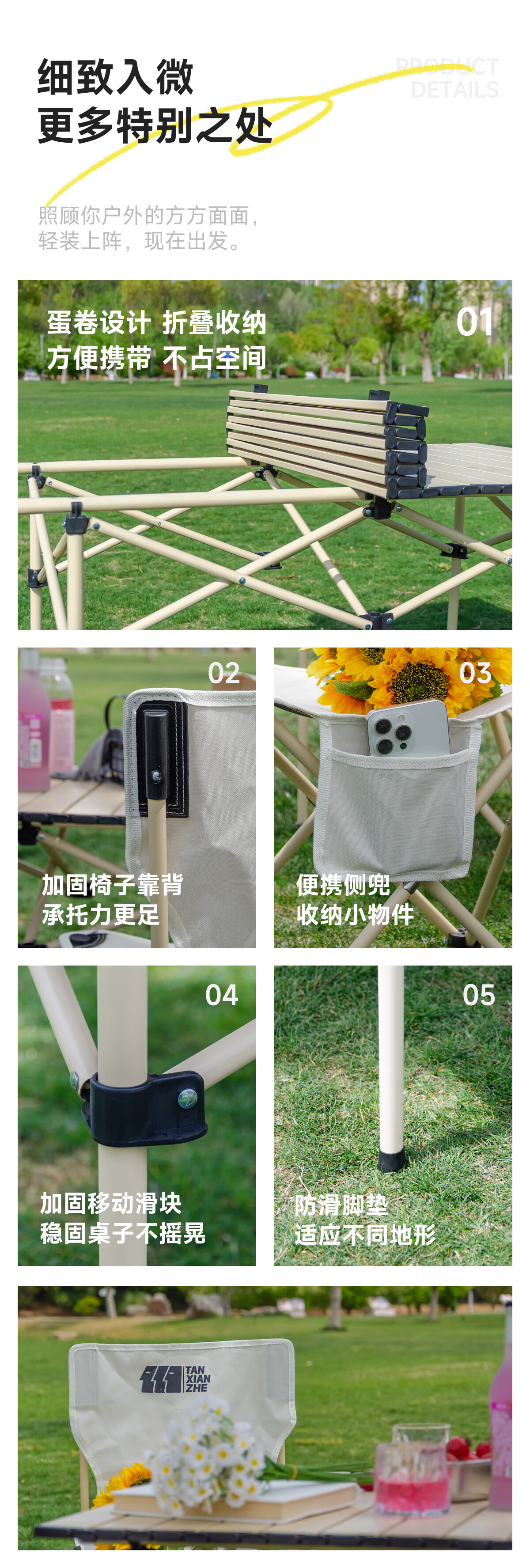 桌子颜值很高,出去玩拍照打卡很舒适,放些东西也很方便,椅子坐上去也很舒服整体体验感很不错。