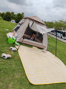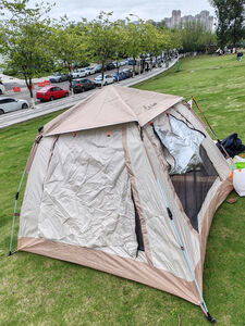 防水效果:防水效果还可以,肯定不如户外的那种,雨天使用不建议购买。 适用场景:太阳🌞天气或者阴天,跟家人一起旅行亲子活动,烧烤露营。 容纳人数:3个没问题 透气效果:好,四面都可以开窗,透气性没话说! 展开类型:有点不好展开,不过研究下问题不大。 便携性能:便利性还可以,就是收起来有点费时间,收纳包不怎么占空间。