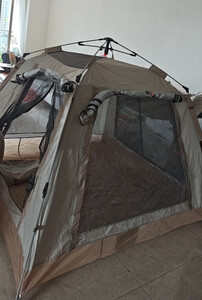 第一次在京东上买帐篷,已收到货。在屋里撑开散散味。挺大的,看着不错。发货也很快,用用看怎么样,习惯性好评吧!过一段时间再来追评。
