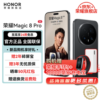 荣耀(HONOR)Magic8 Pro 新品5GAI手机 第五代骁龙8至尊版 YOYO智能体 超夜神长焦 谢霆锋同款 绒黑色 16GB+512GB【2年碎屏险】 24期免息套餐