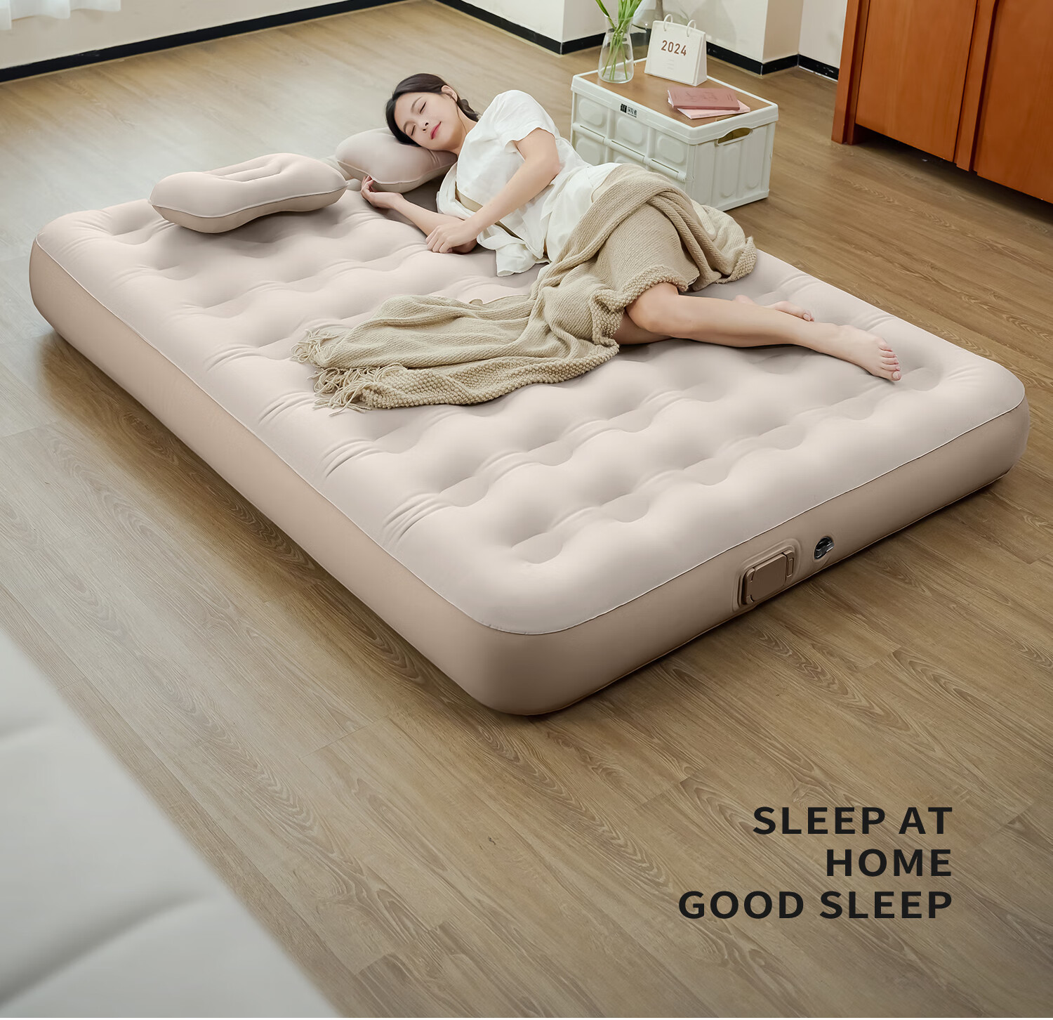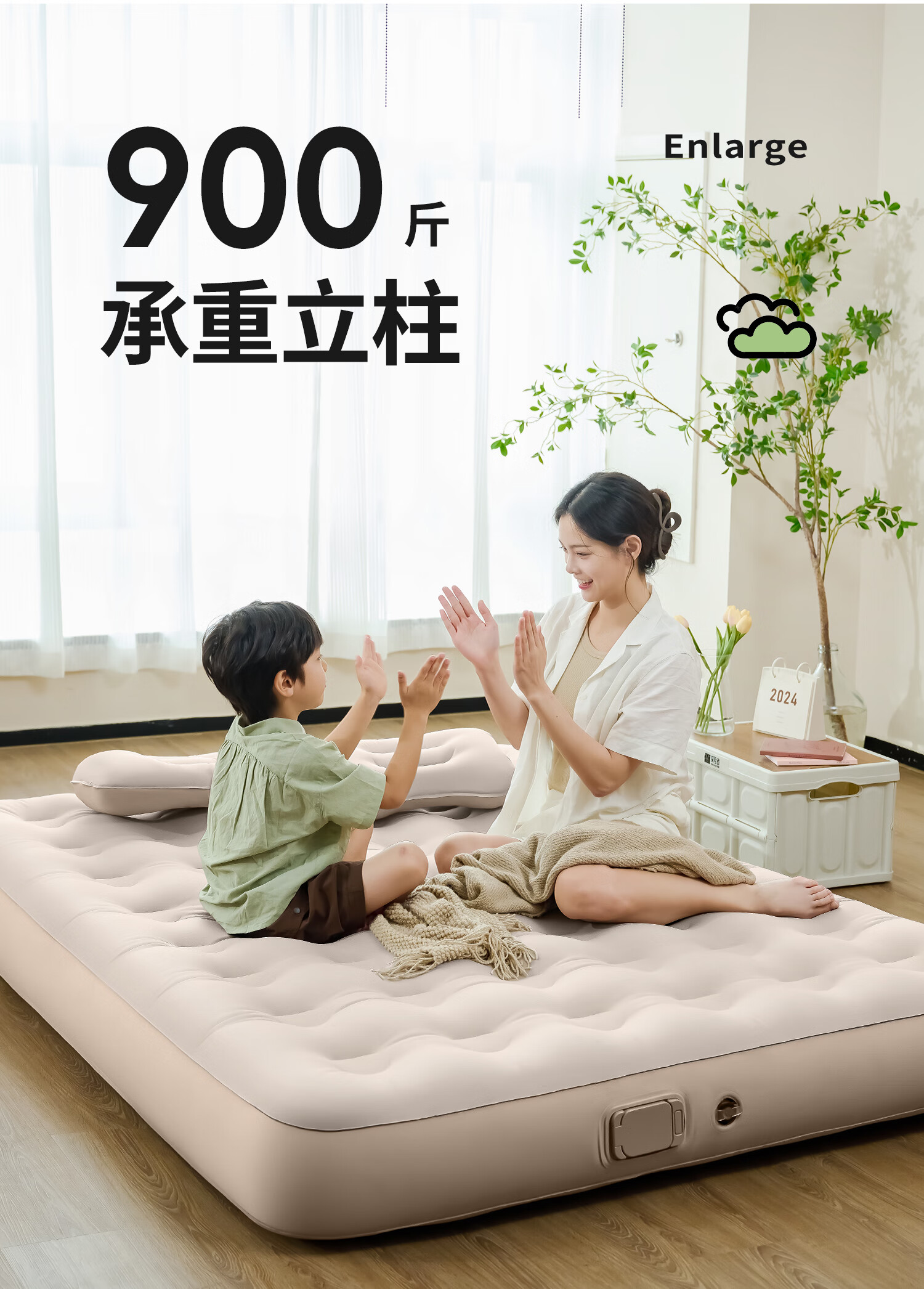 充气床垫很结实,很大,躺着很舒服,小朋友躺在上面玩都不愿意下来