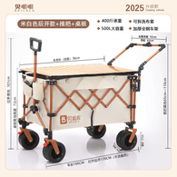 oein贝拉拉露营车聚拢款四轮摆摊小推车户外野营野餐折叠小拖车 聚拢新升级后开款-米白色【车+桌