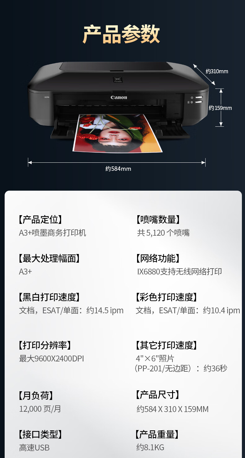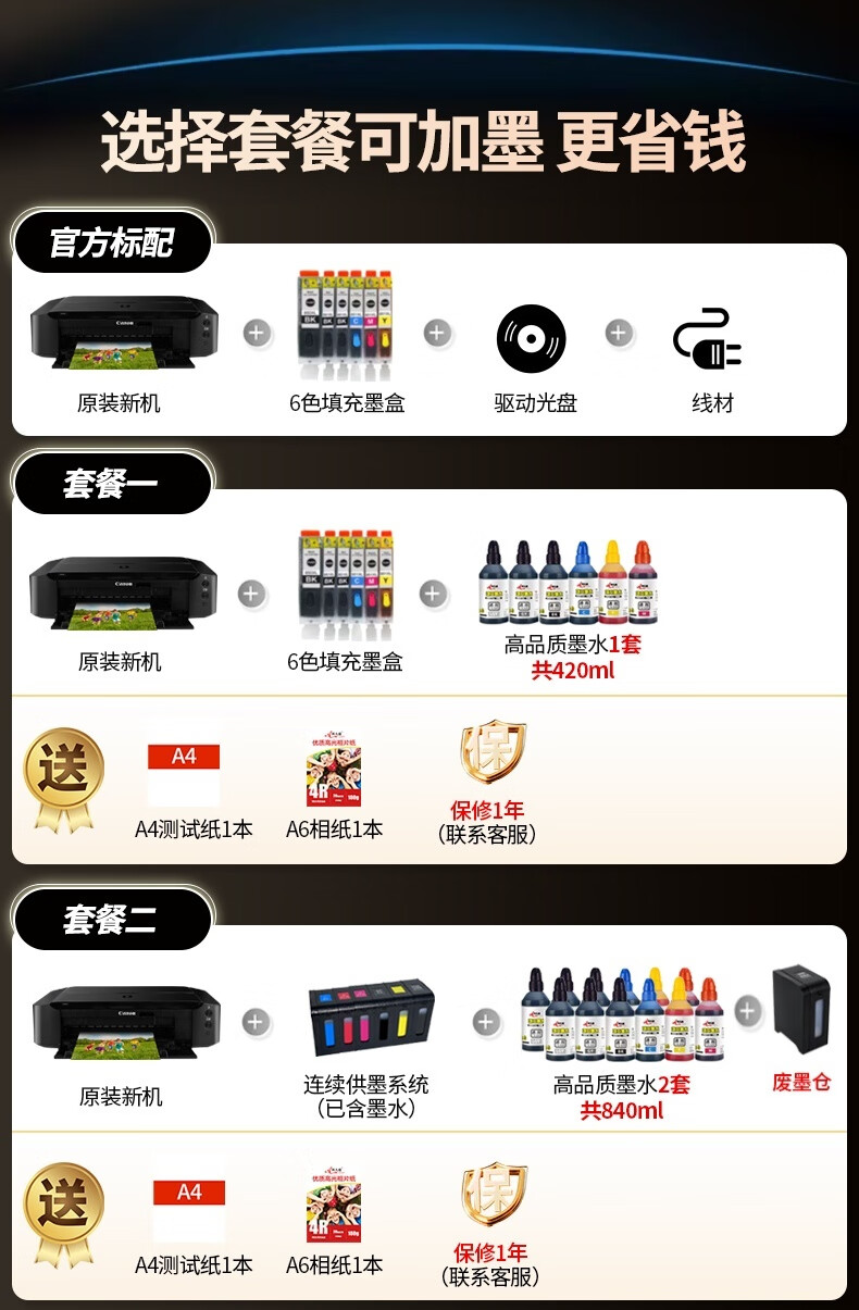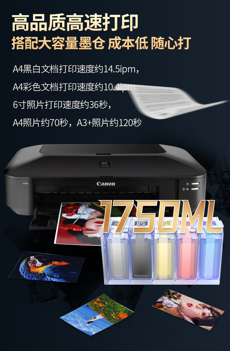 佳能ix6780照片打印机专业a3商用彩色办公标签不干胶错题机家庭打印墨仓式连供喷墨机封面相片铜版纸 套餐4(大容量连供可加墨+20瓶墨水)