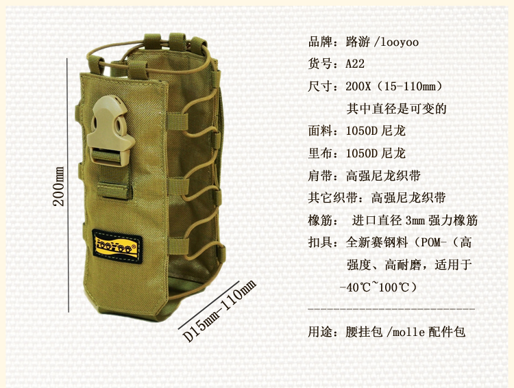 路游(LooYoo) A22 户外多功能可变容量水壶杯袋套军迷molle配附件包旅行腰包 卡其色