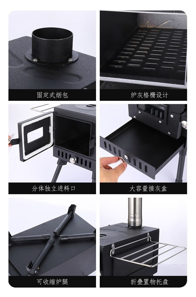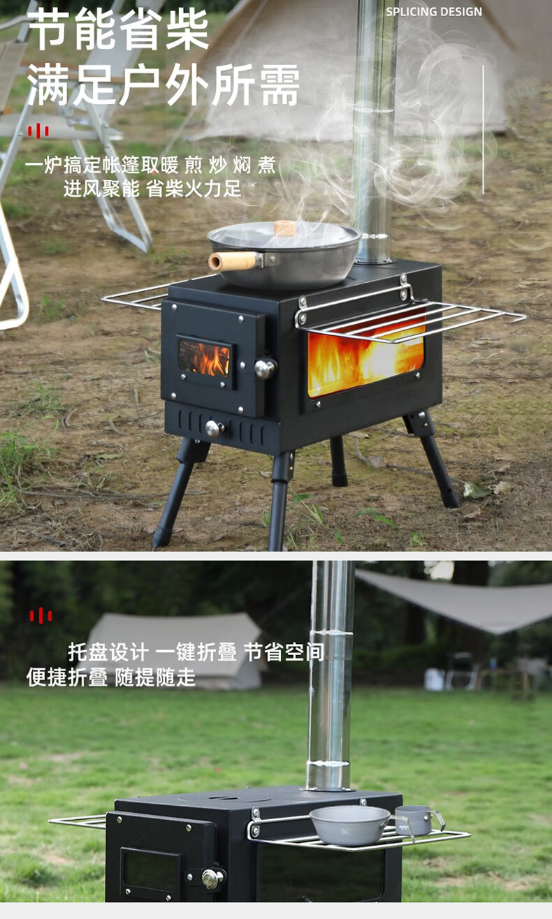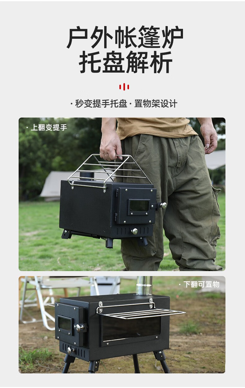 弗曼途户外露营野炊火炉帐篷炉野营装备便携可折叠火灶烧烤炉取暖炉 炉子两个玻璃窗+烟管+防火垫