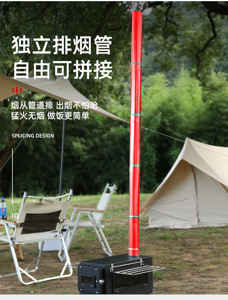 凰一 柴火炉户外野营折叠卡式无烟火箭露营便携帐篷取暖炉 不锈钢帐篷炉(窗花)