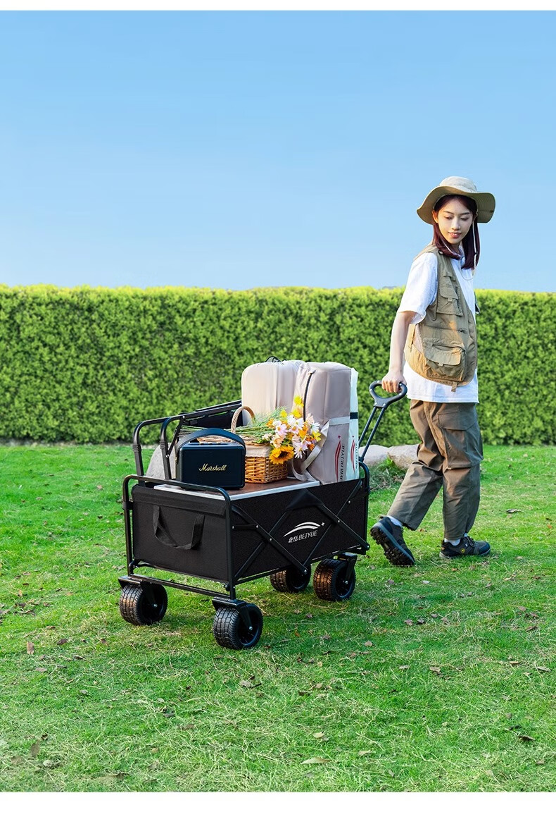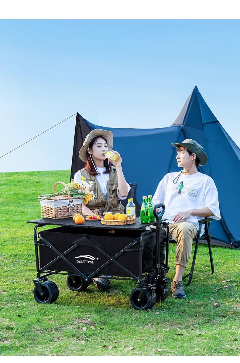 北岳露营推车可折叠户外手推野餐车营地拖车拉杆小拉车桌板烧烤野营车 桌板套餐-便携款煤炭黑+曜黑桌板