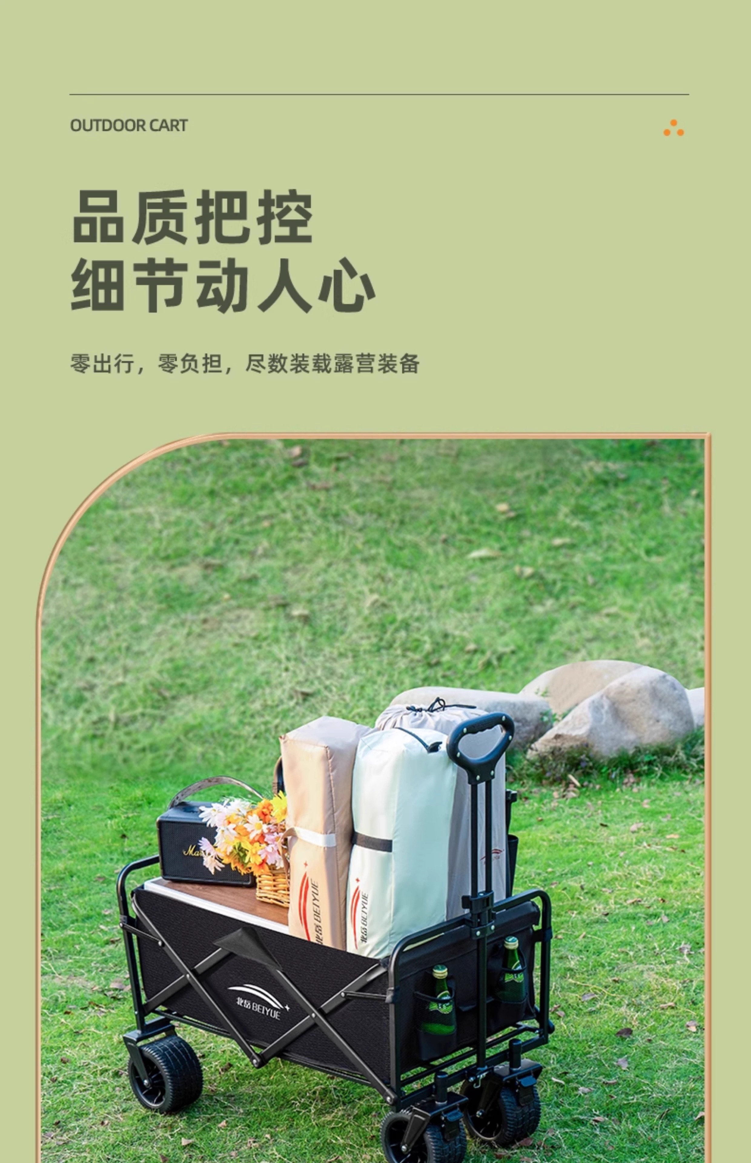 北岳露营推车可折叠户外手推野餐车营地拖车拉杆小拉车桌板烧烤野营车 桌板套餐-便携款云瑾白+木纹桌板