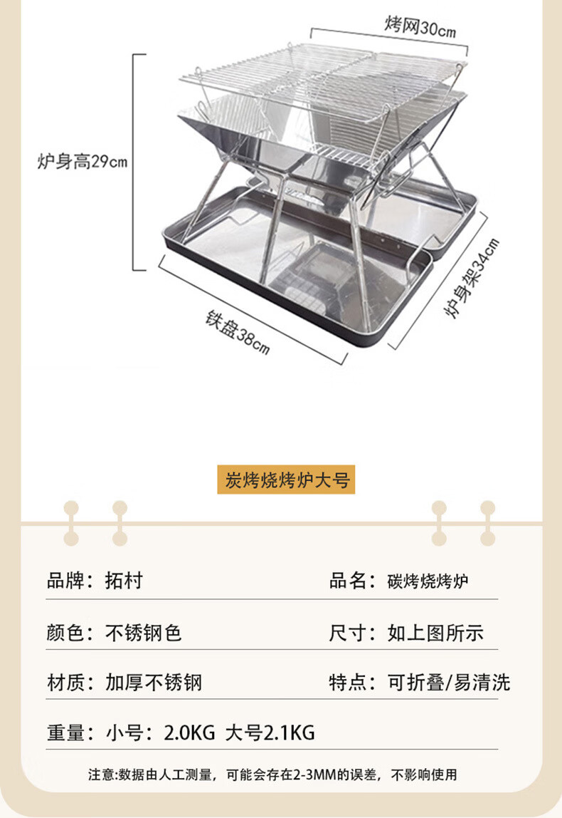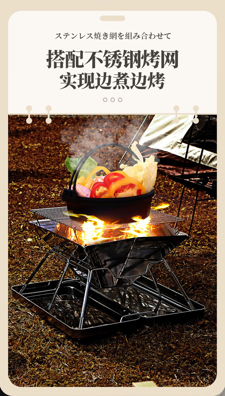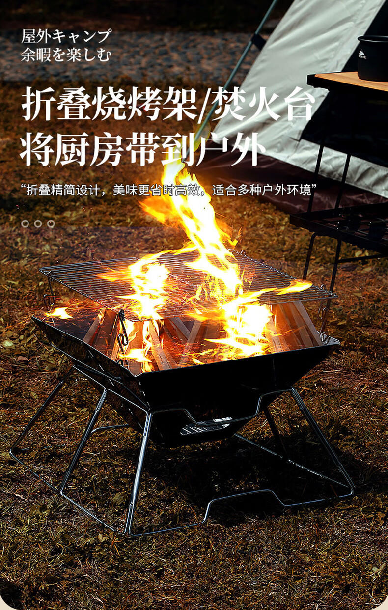 拓村户外不锈钢轻便烧烤炉折叠焚火架野营野餐烧烤柴火炭火炉具 烧烤炉大号
