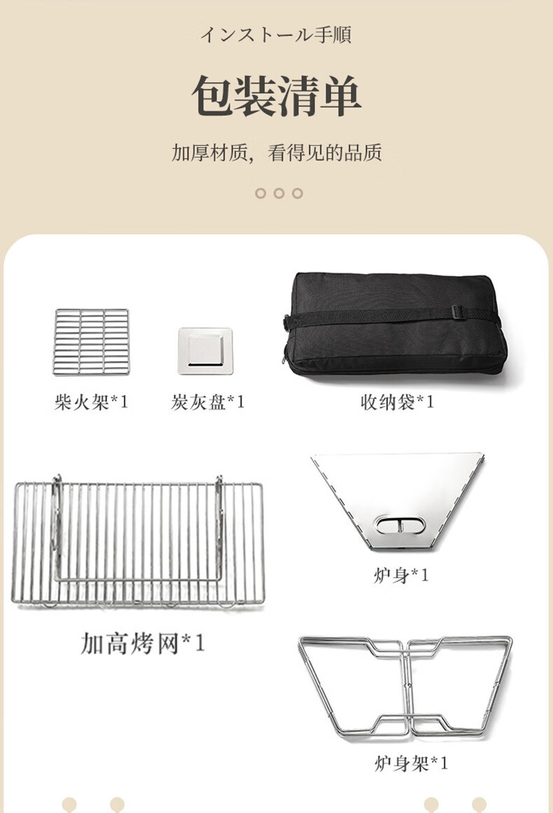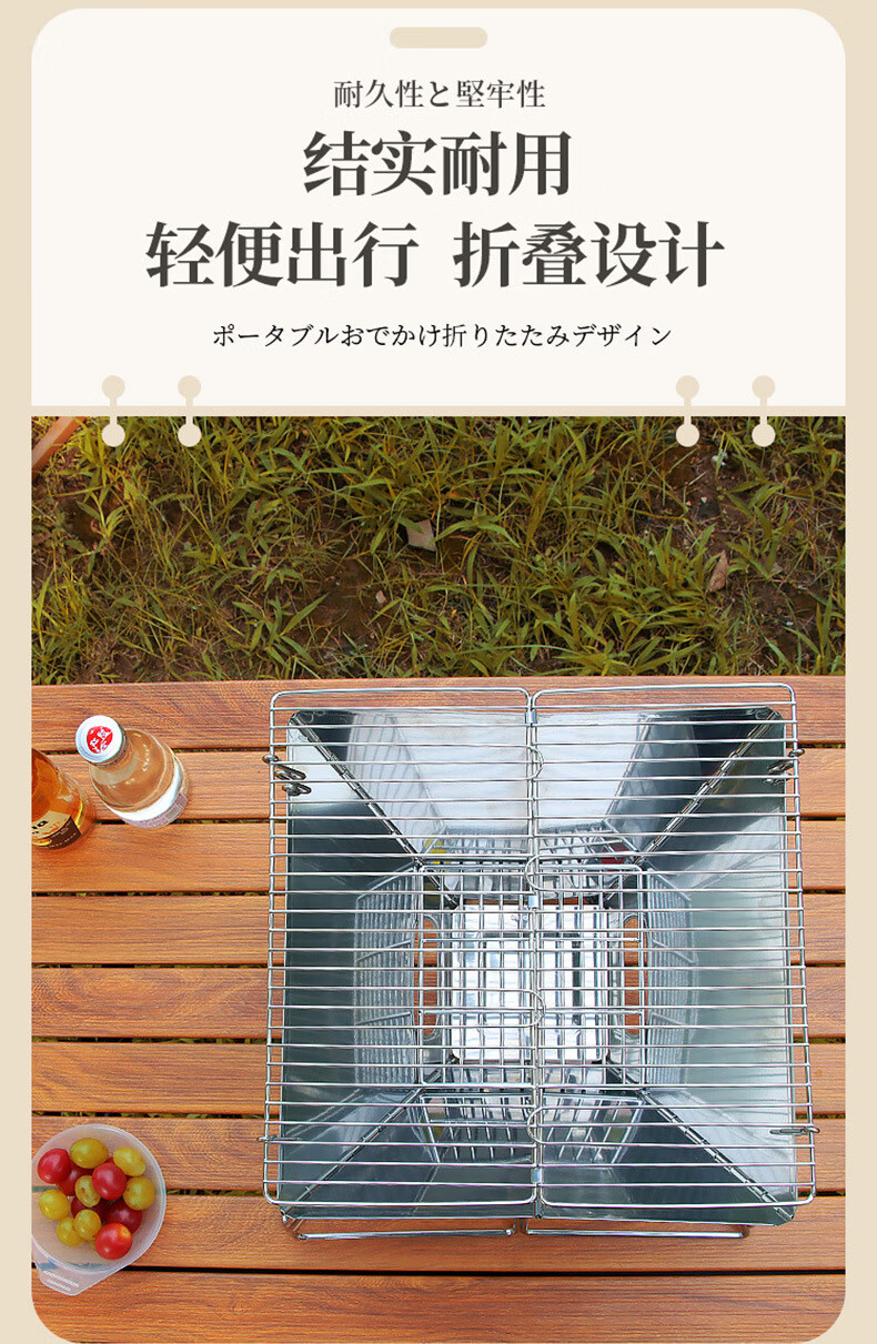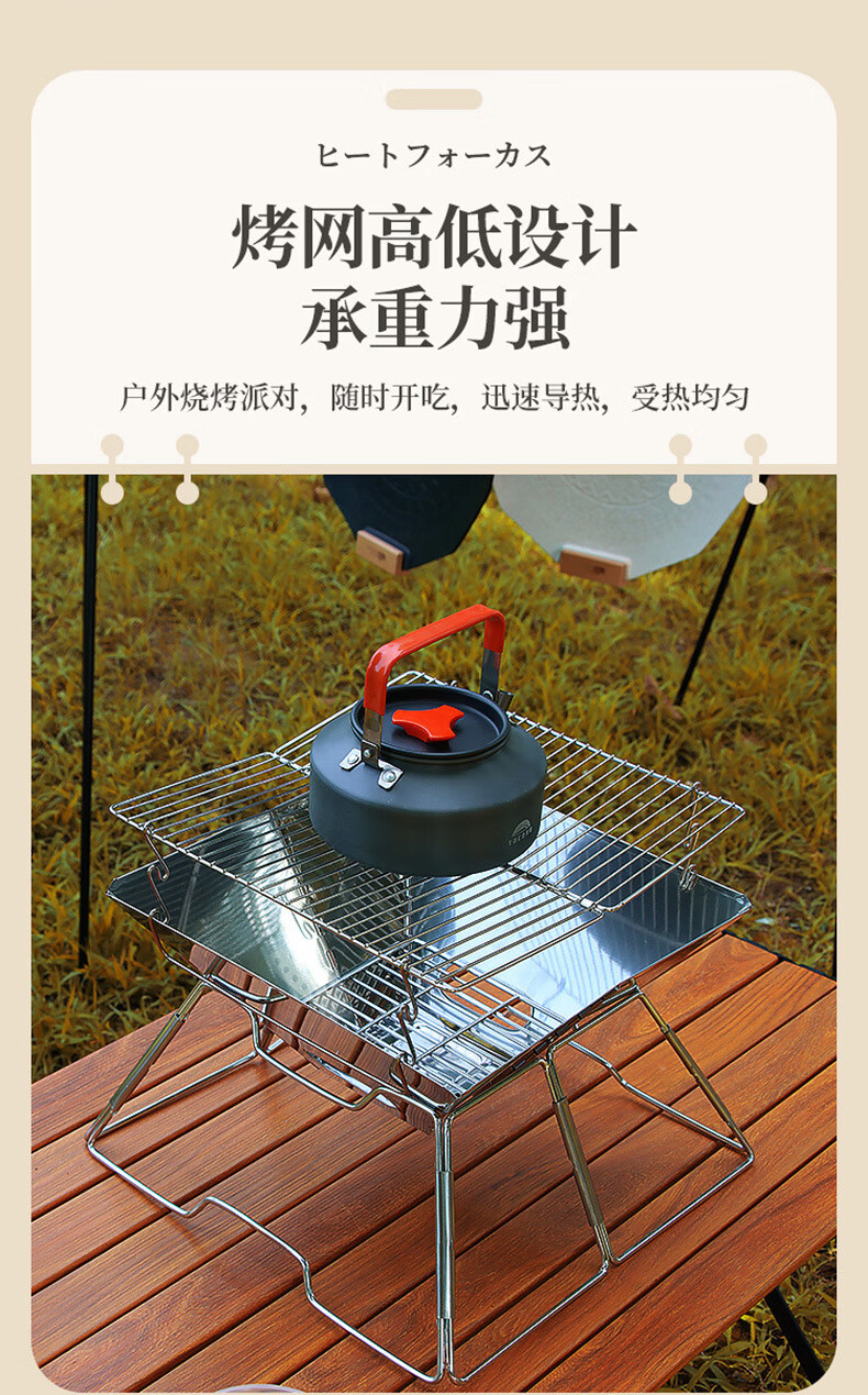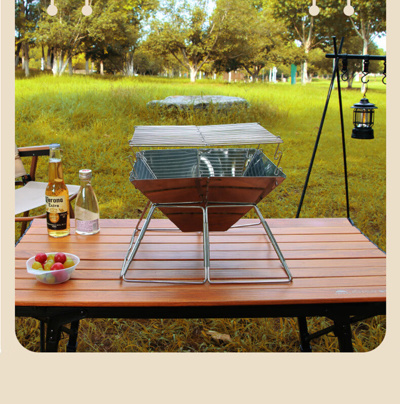 拓村户外不锈钢轻便烧烤炉折叠焚火架野营野餐烧烤柴火炭火炉具 烧烤炉大号