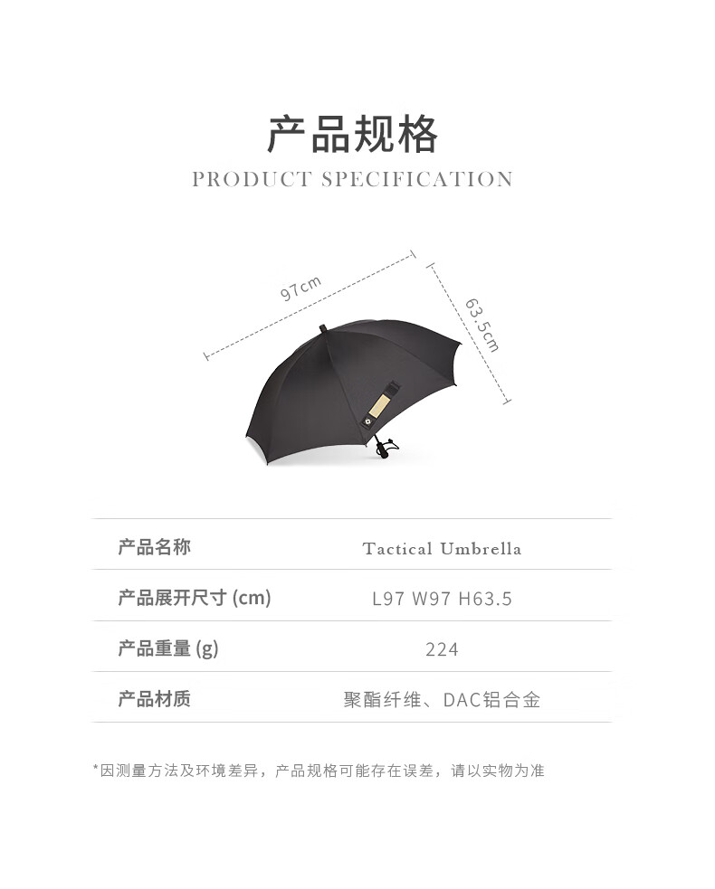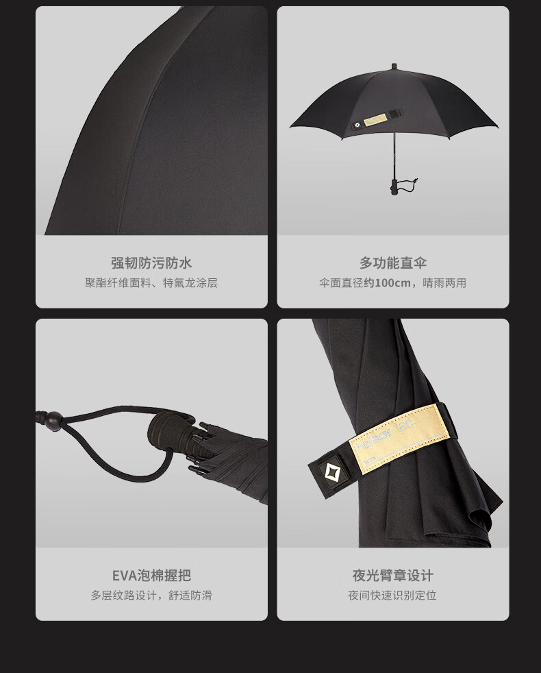 HELINOX Tactical Umbrella 战术轻量伞户外徒步登山便携长柄伞 Black 黑色