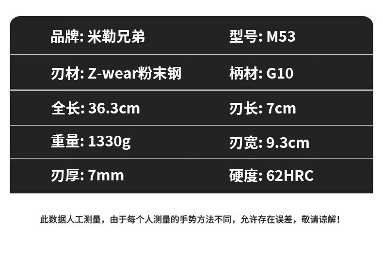 MILLER BRO 米勒兄弟美国Z-WEAR粉末钢 一体龙骨斧头户外多功能战术高硬度小刀EDC斧子