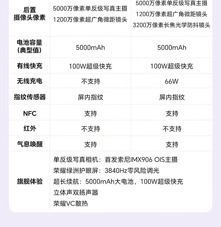 荣耀100Pro/100可选,参数有差异,下单时可按需求选购(链接参数为荣耀100Pro,参数对比请看详情页面)