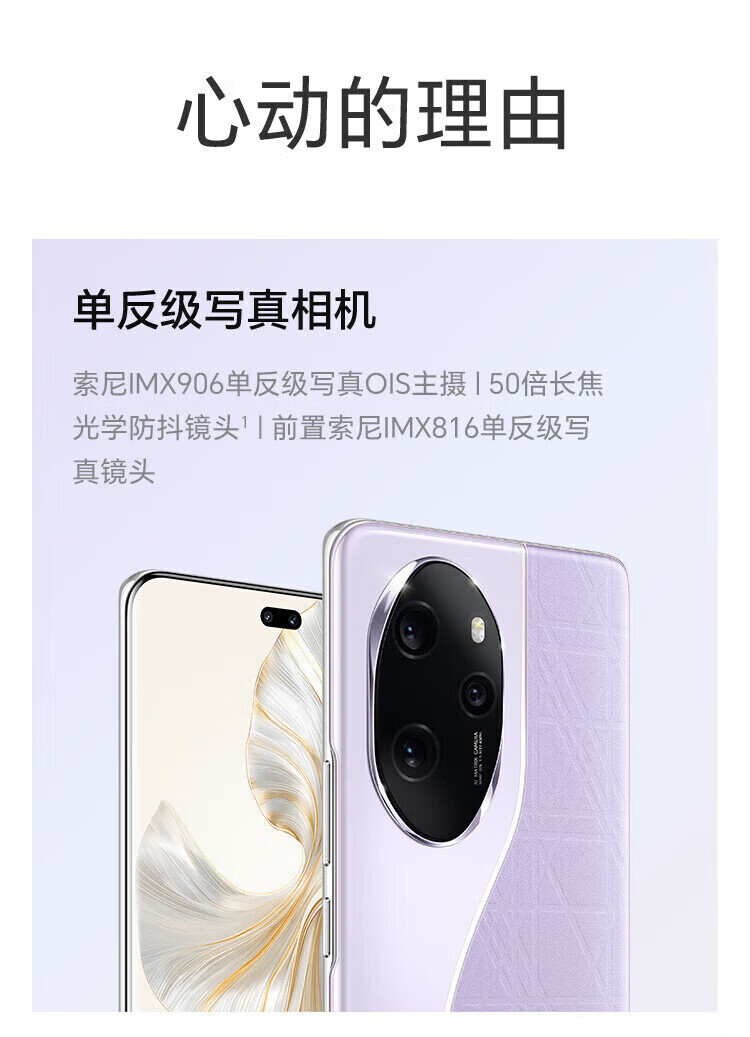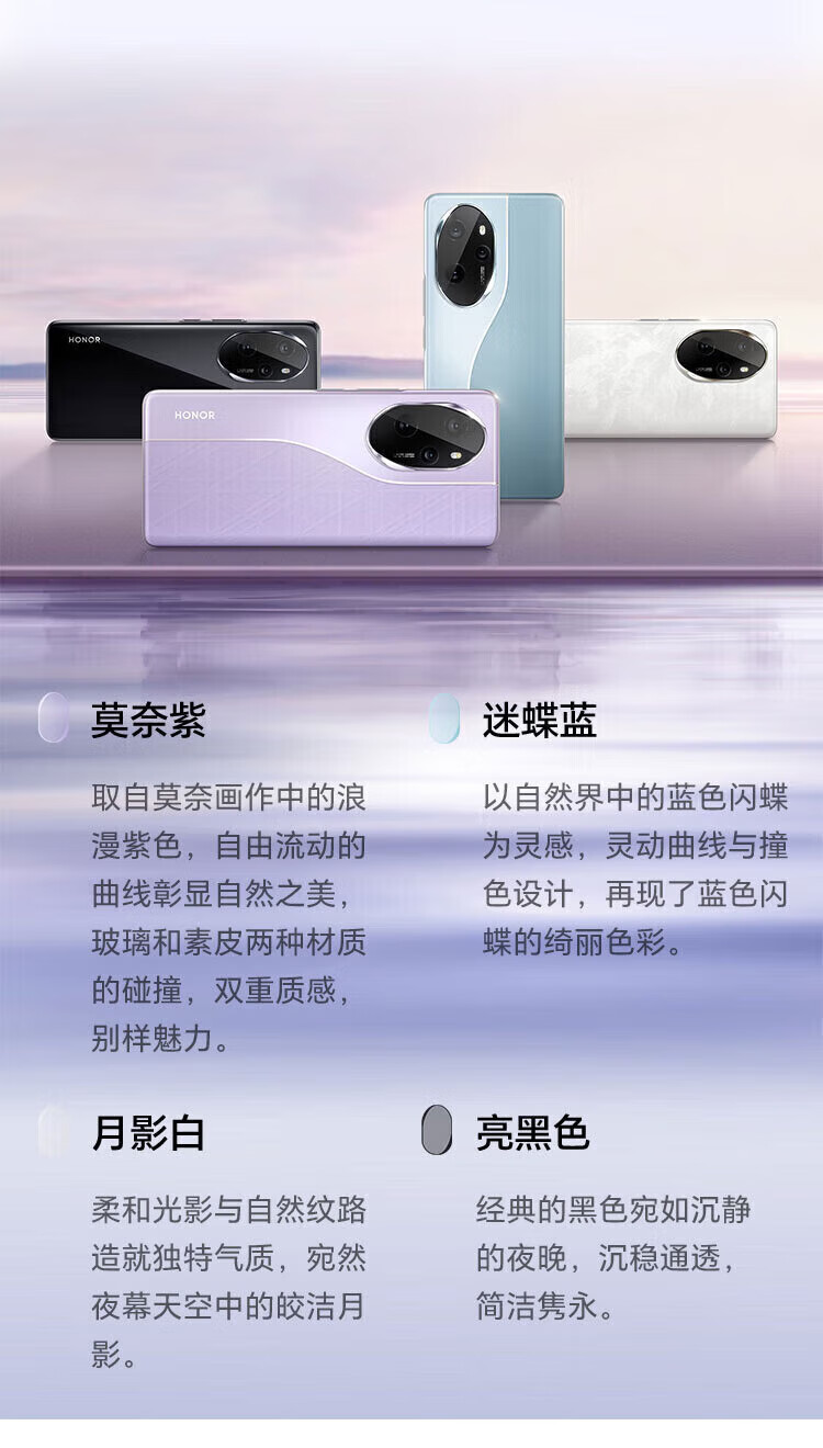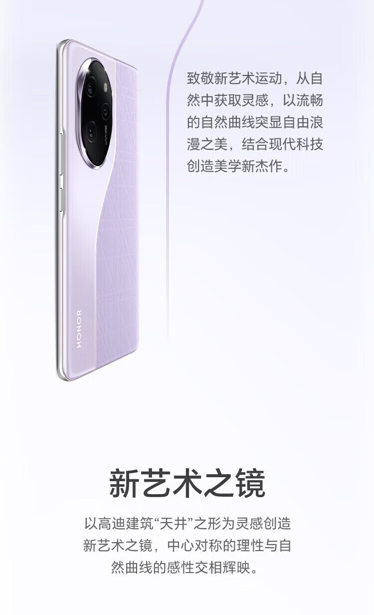 荣耀(HONOR)100 Pro 第二代骁龙8+旗舰芯片绿洲护眼屏 5G手机 莫奈紫 16GB+256GB 单机+第三方品牌充电器+店保1年