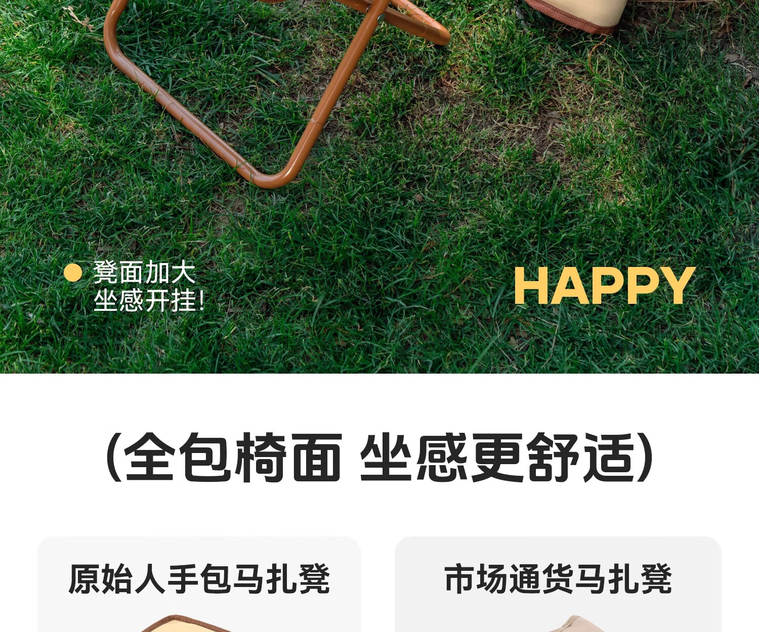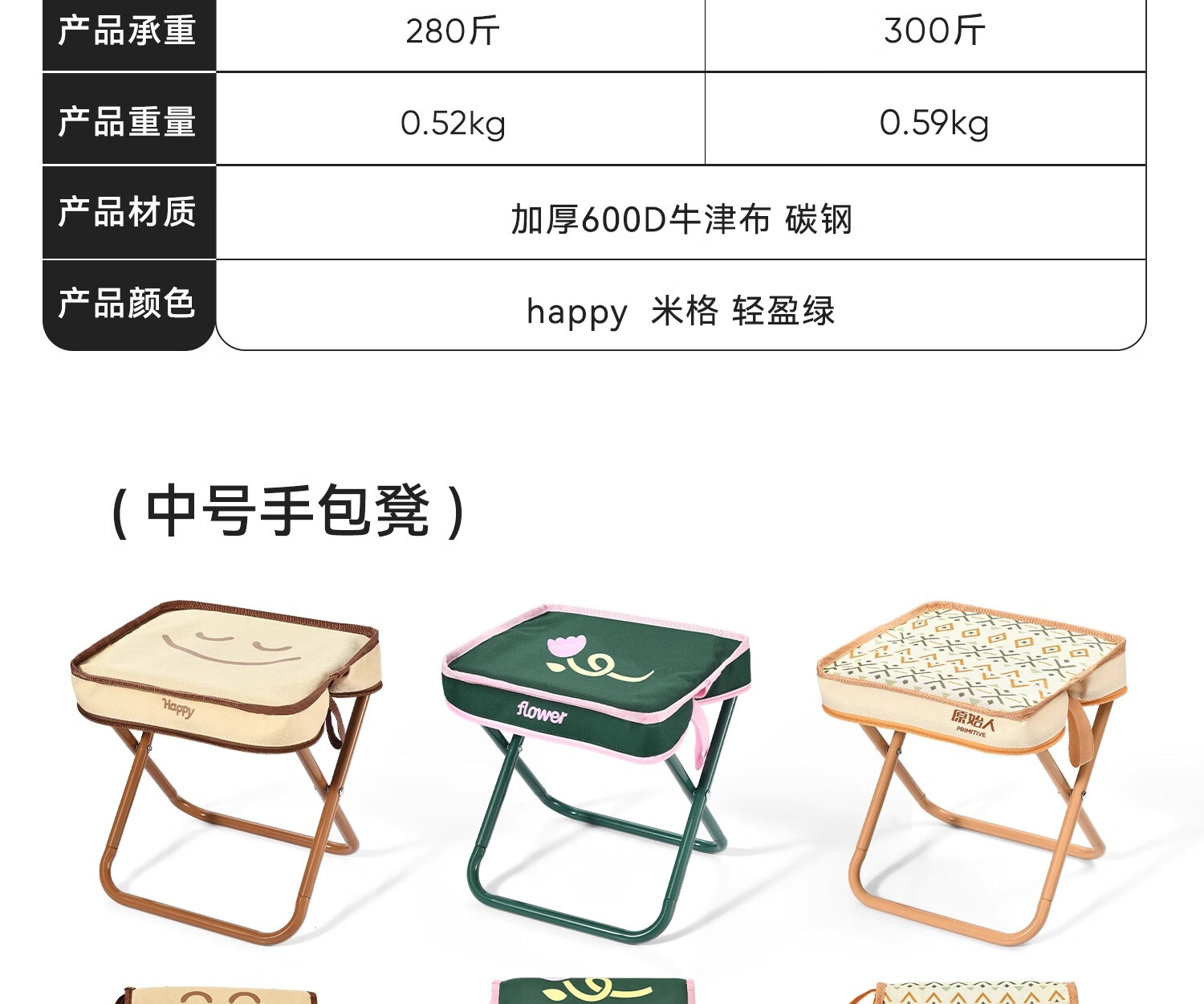 原始人折叠凳子户外折叠椅便携式小马扎露营钓鱼排队神器小板凳野餐笔袋 轻盈绿大号-超轻便携 超强承重